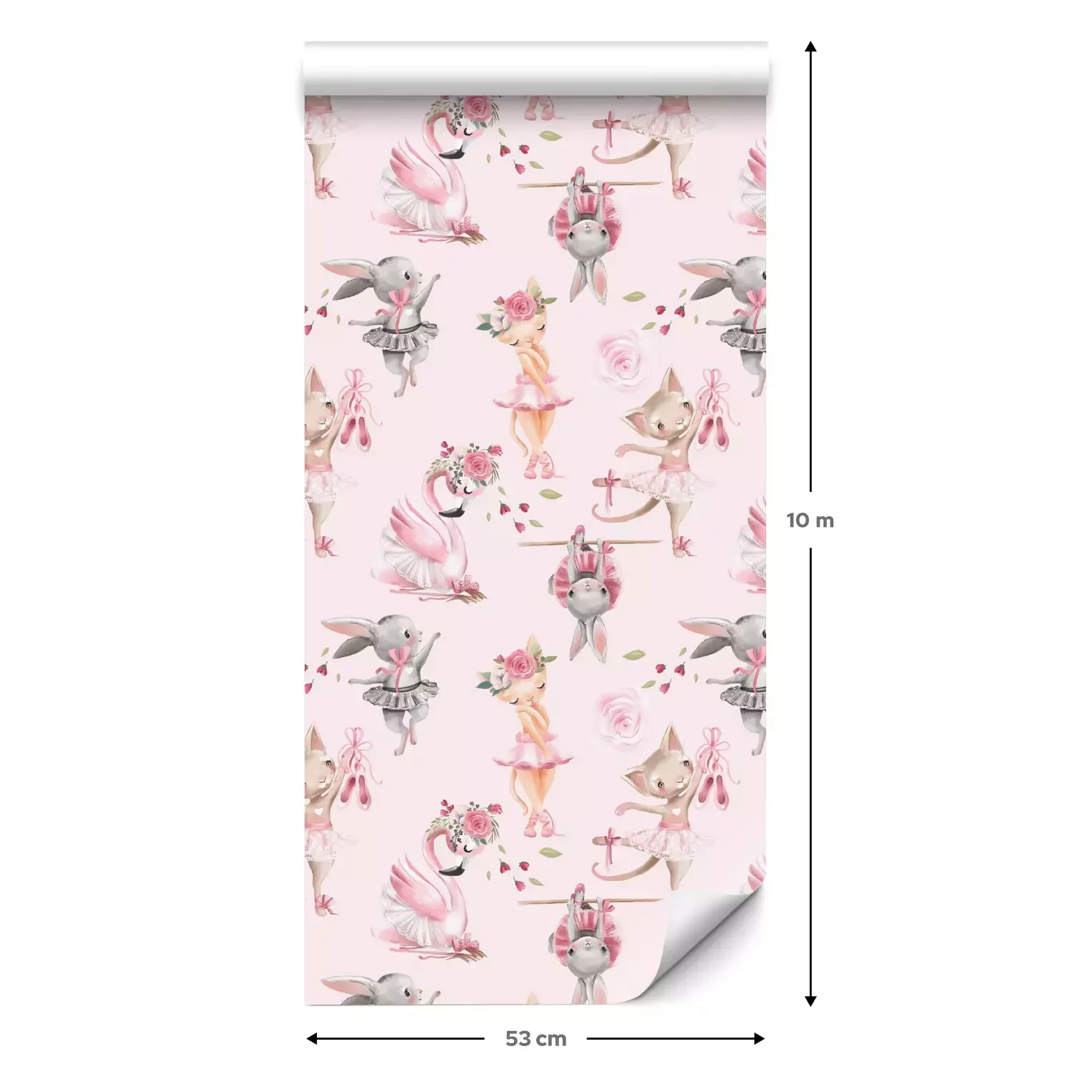 Eine Standard-Tapetenrolle hat die Maße 0,53 m x 10 m und deckt eine Wandfläche von etwa 5 m² ab.