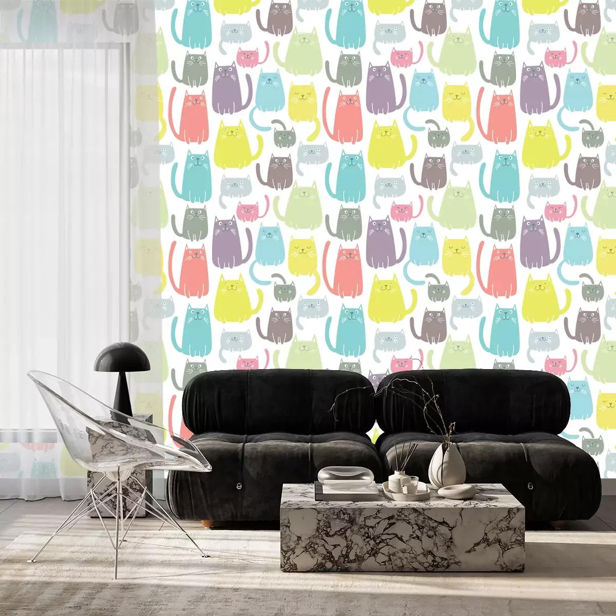 Schwarz-weißes Muster mit KatzenProblemlose Lieferung durch vertrauenswürdige Spediteure