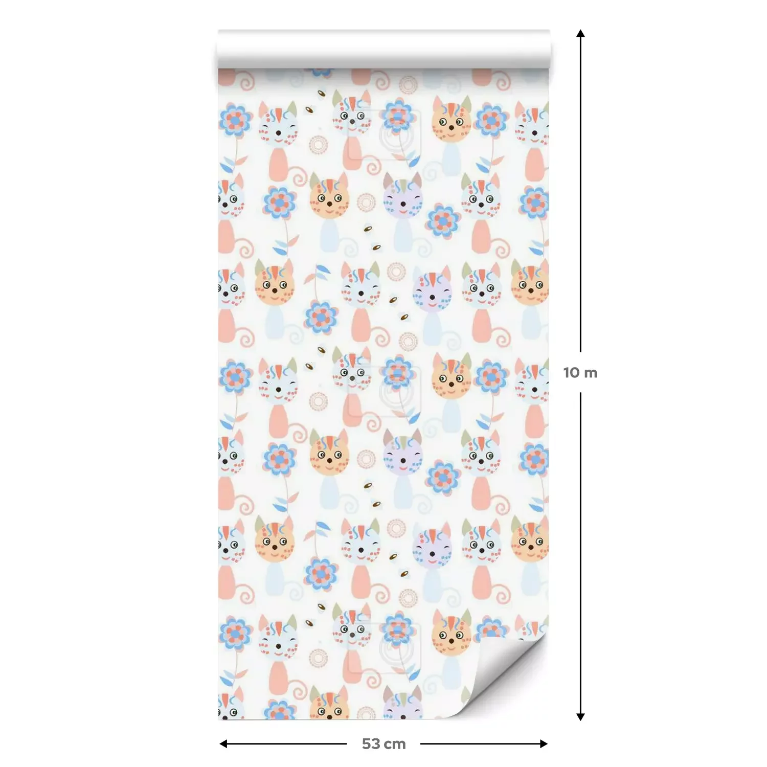 Eine Standard-Tapetenrolle hat die Maße 0,53 m x 10 m und deckt eine Wandfläche von etwa 5 m² ab.