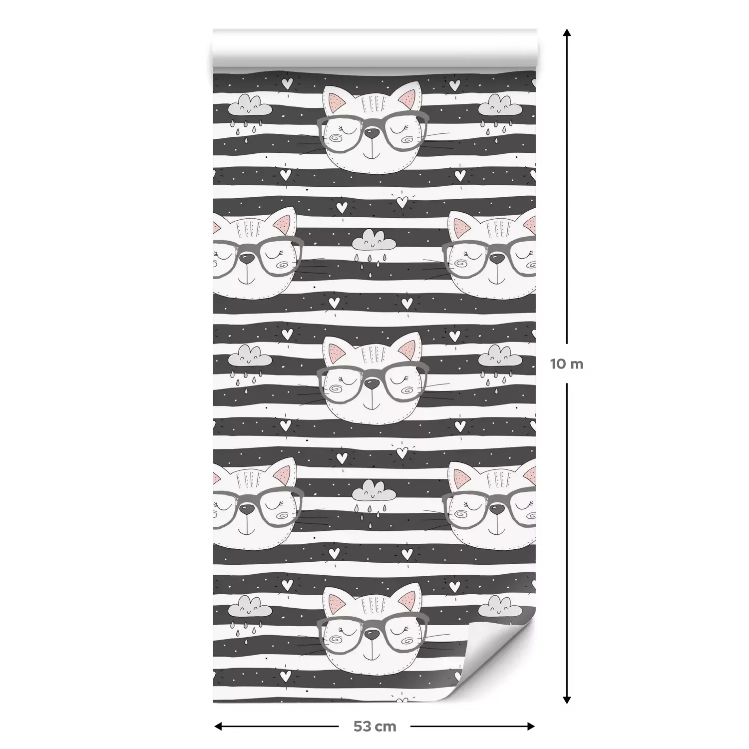 Eine Standard-Tapetenrolle hat die Maße 0,53 m x 10 m und deckt eine Wandfläche von etwa 5 m² ab.