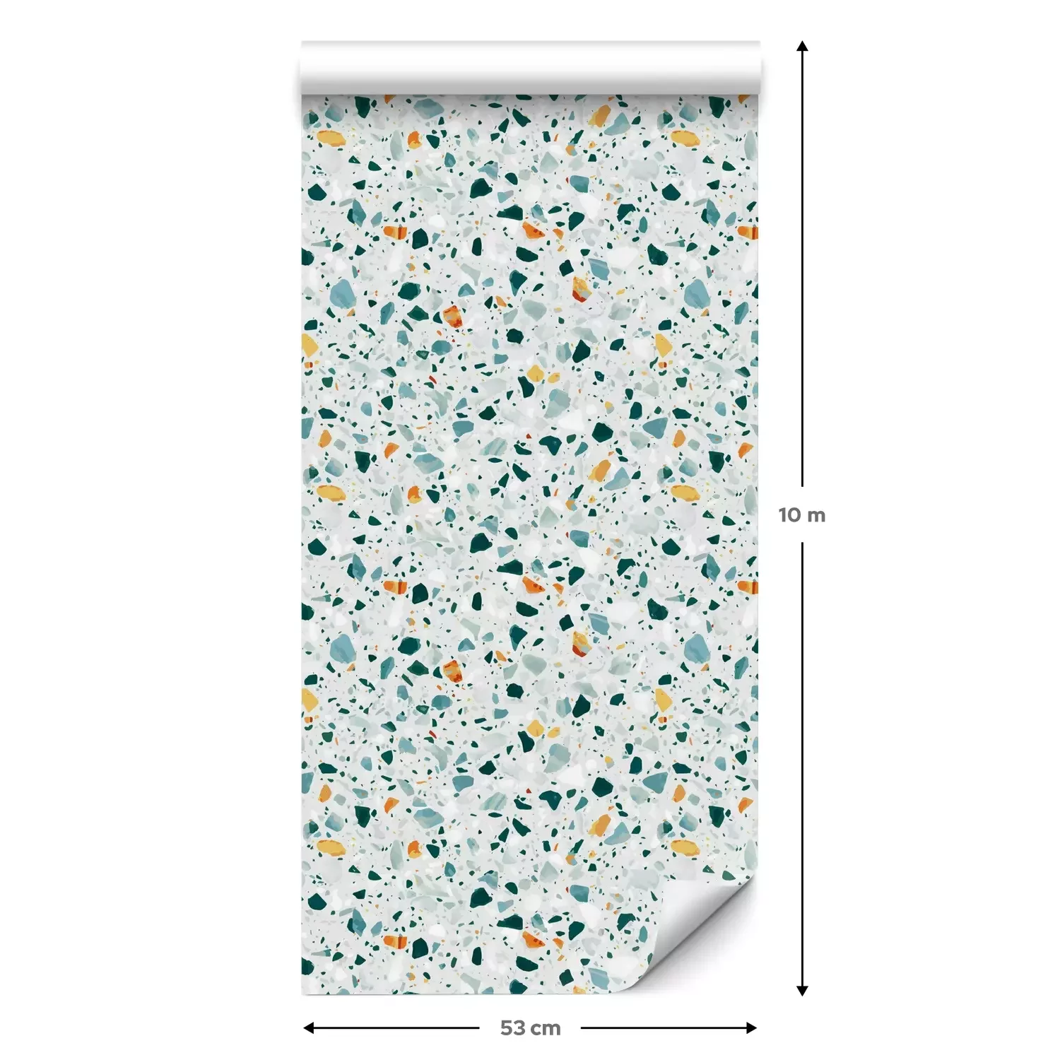 Eine Standard-Tapetenrolle hat die Maße 0,53 m x 10 m und deckt eine Wandfläche von etwa 5 m² ab.