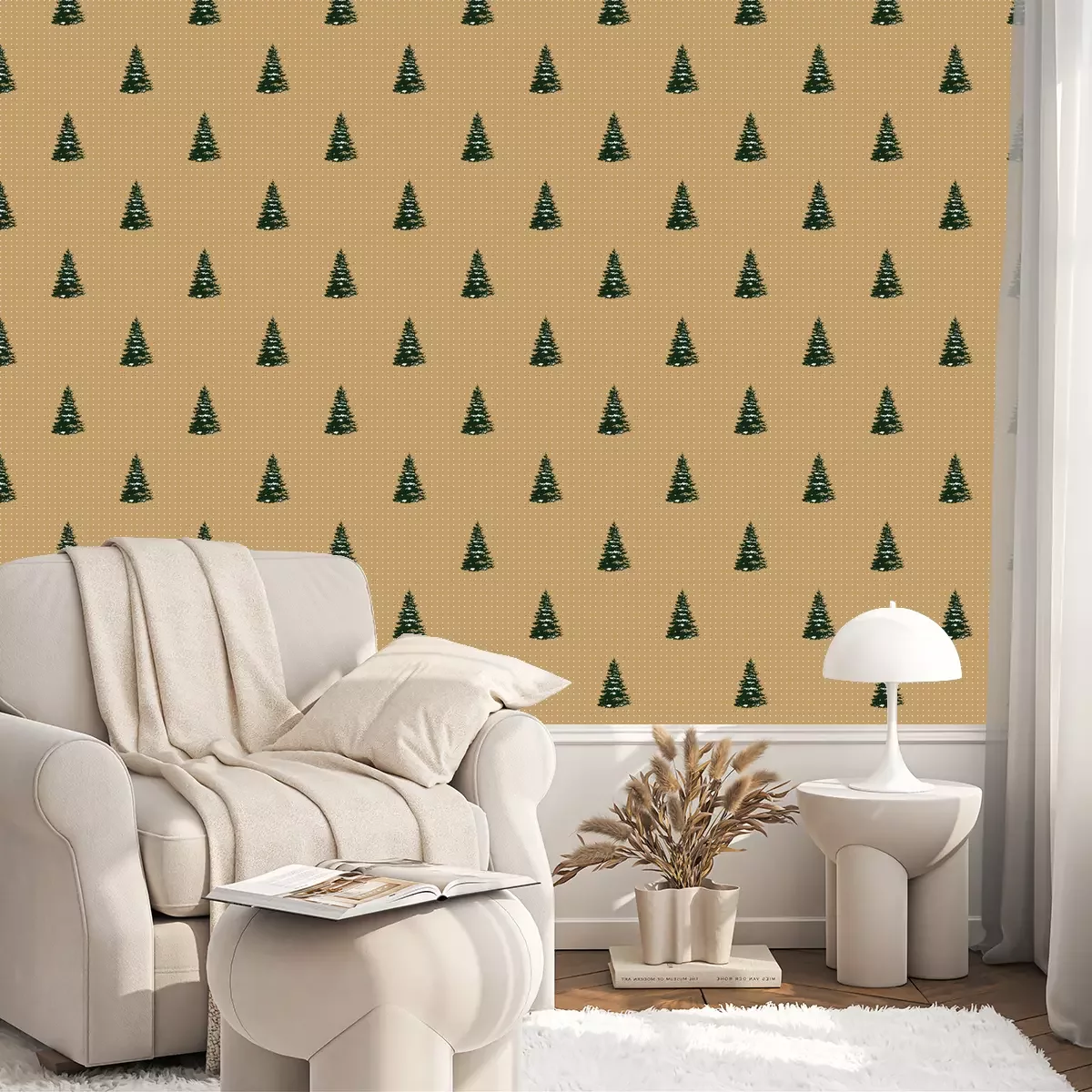 Weiß skizzierte BäumeTapete
