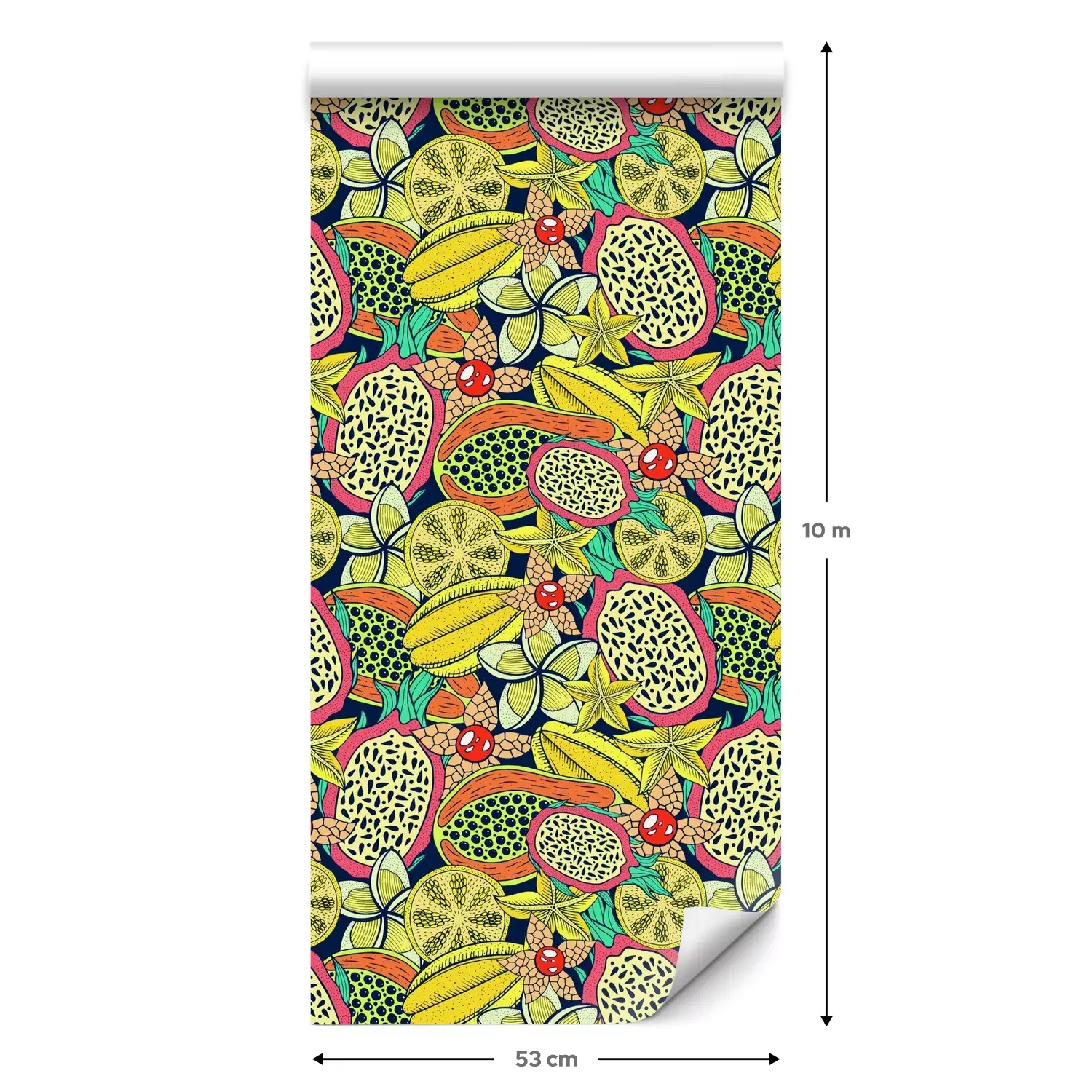 Eine Standard-Tapetenrolle hat die Maße 0,53 m x 10 m und deckt eine Wandfläche von etwa 5 m² ab.