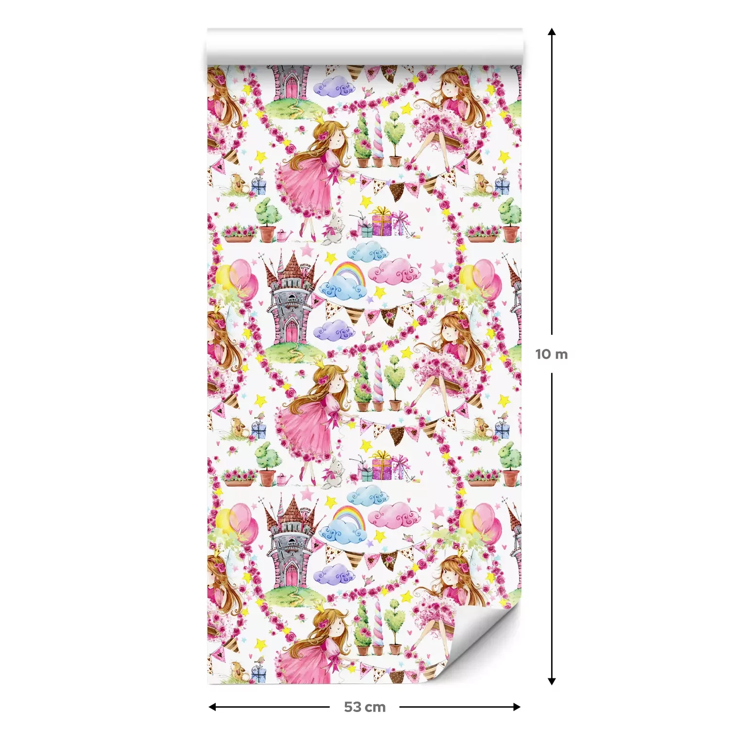 Eine Standard-Tapetenrolle hat die Maße 0,53 m x 10 m und deckt eine Wandfläche von etwa 5 m² ab.