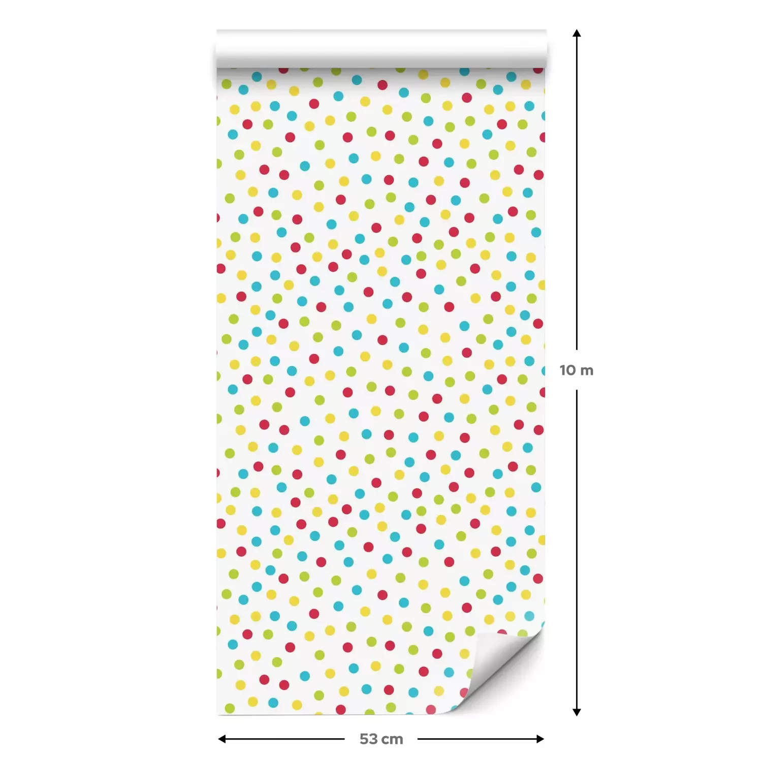 Eine Standard-Tapetenrolle hat die Maße 0,53 m x 10 m und deckt eine Wandfläche von etwa 5 m² ab.