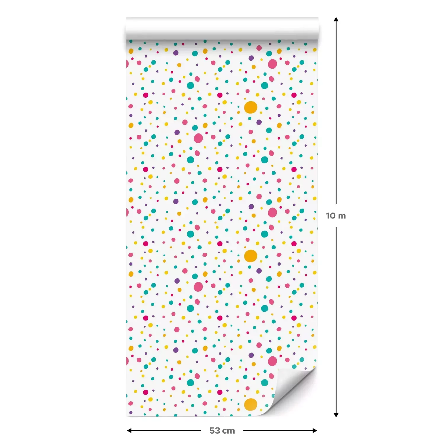 Eine Standard-Tapetenrolle hat die Maße 0,53 m x 10 m und deckt eine Wandfläche von etwa 5 m² ab.