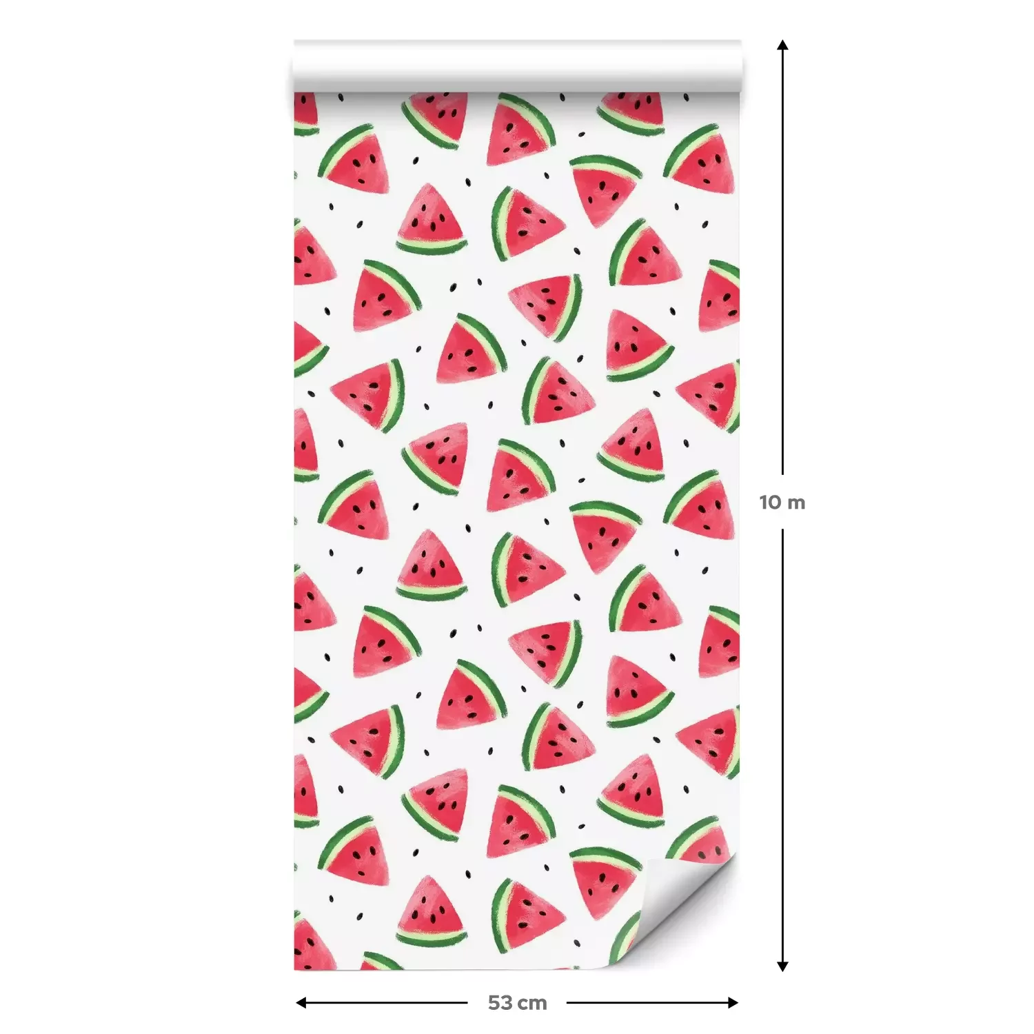 Eine Standard-Tapetenrolle hat die Maße 0,53 m x 10 m und deckt eine Wandfläche von etwa 5 m² ab.