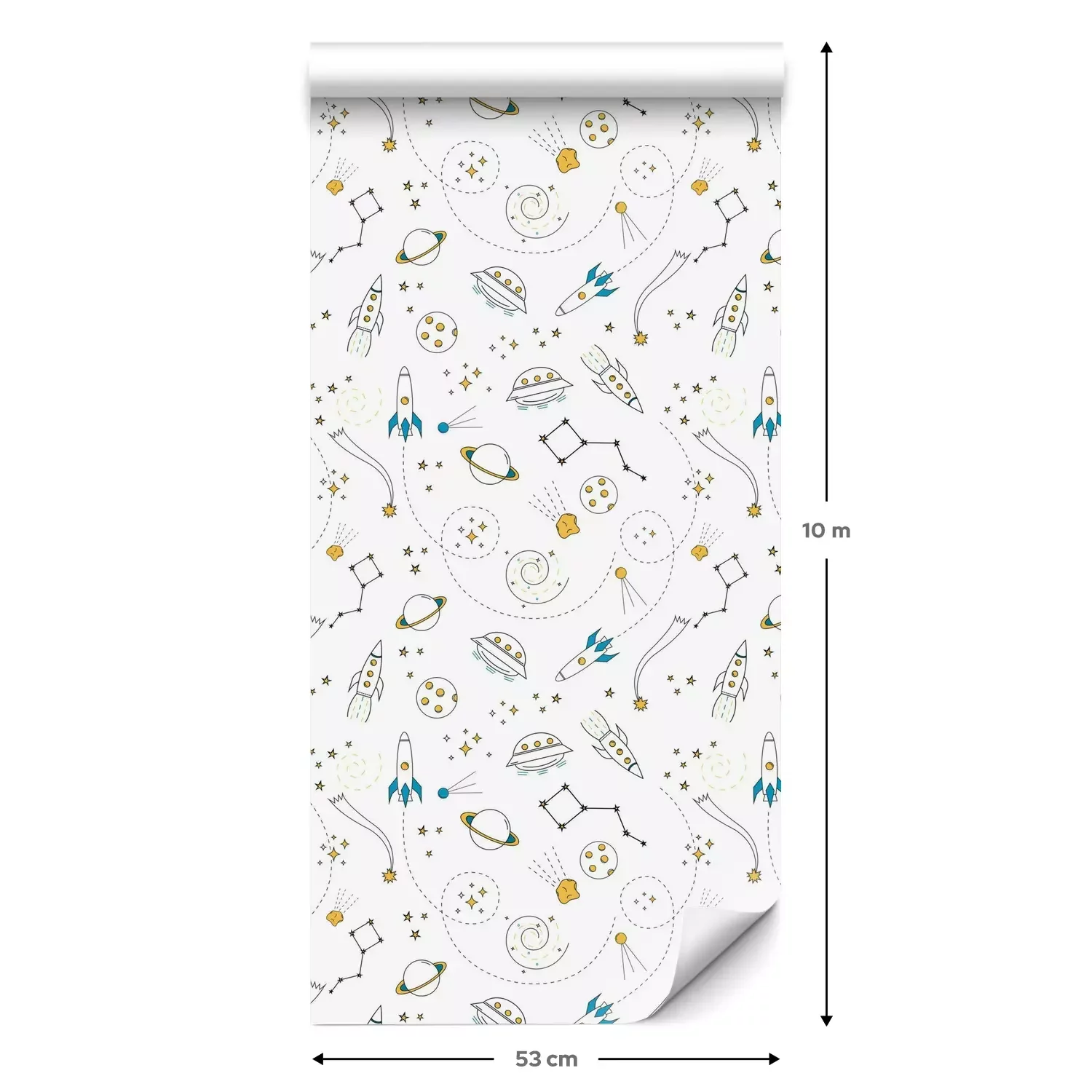 Eine Standard-Tapetenrolle hat die Maße 0,53 m x 10 m und deckt eine Wandfläche von etwa 5 m² ab.