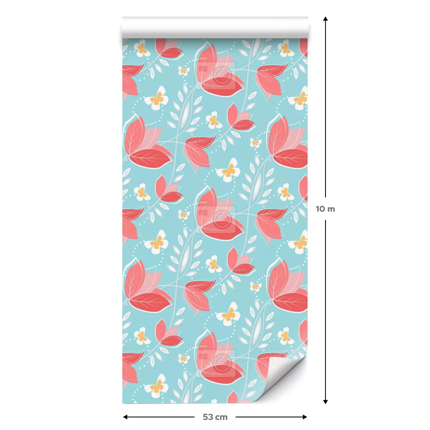 Eine Standard-Tapetenrolle hat die Maße 0,53 m x 10 m und deckt eine Wandfläche von etwa 5 m² ab.