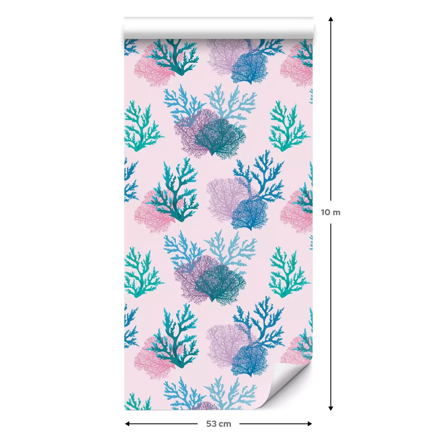 Eine Standard-Tapetenrolle hat die Maße 0,53 m x 10 m und deckt eine Wandfläche von etwa 5 m² ab.