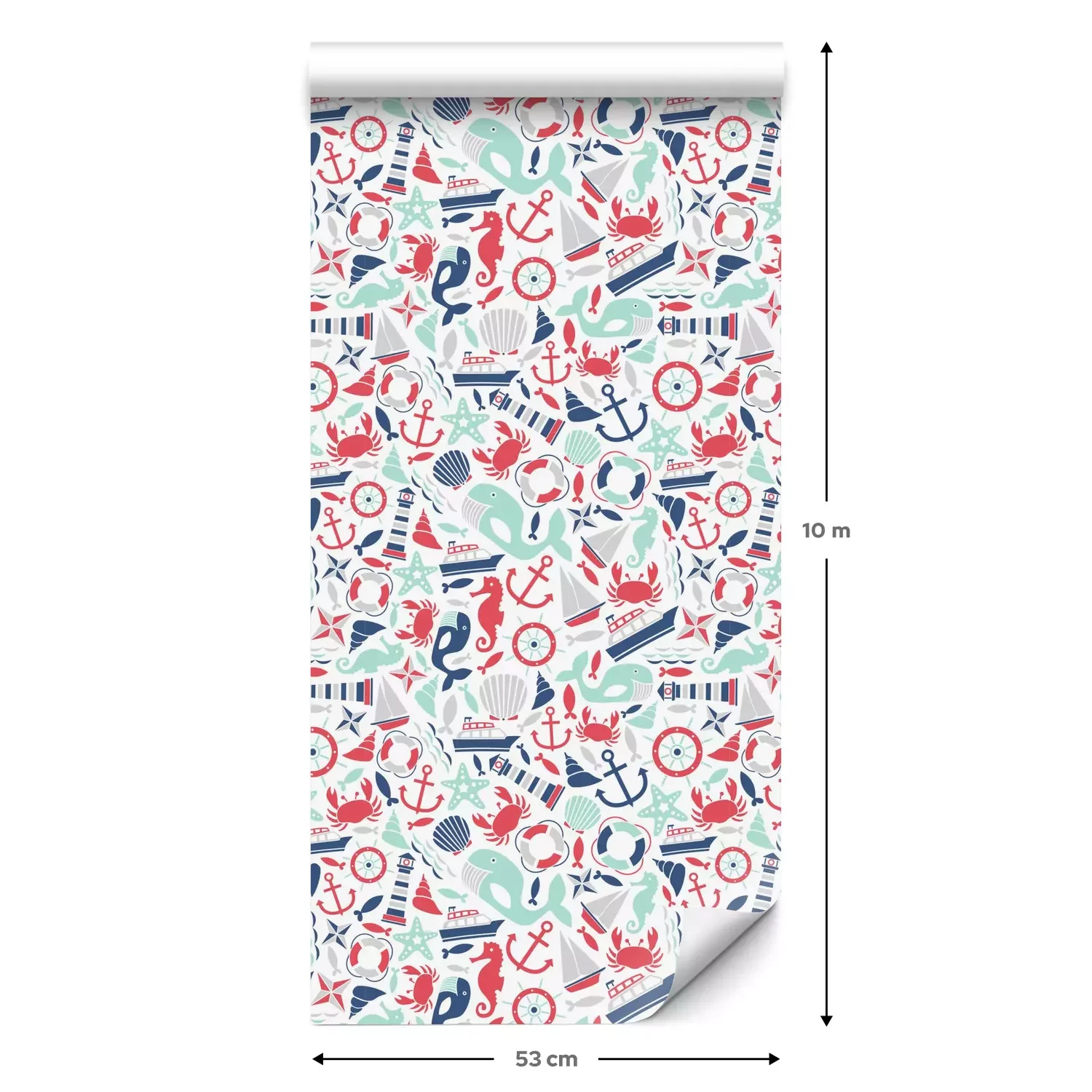 Eine Standard-Tapetenrolle hat die Maße 0,53 m x 10 m und deckt eine Wandfläche von etwa 5 m² ab.