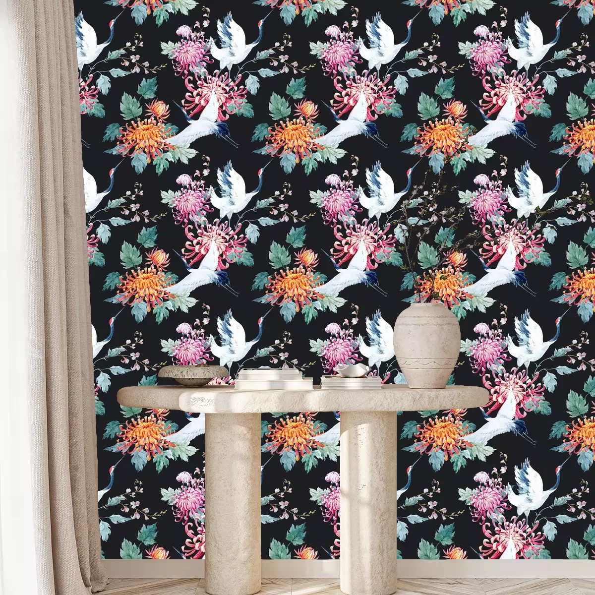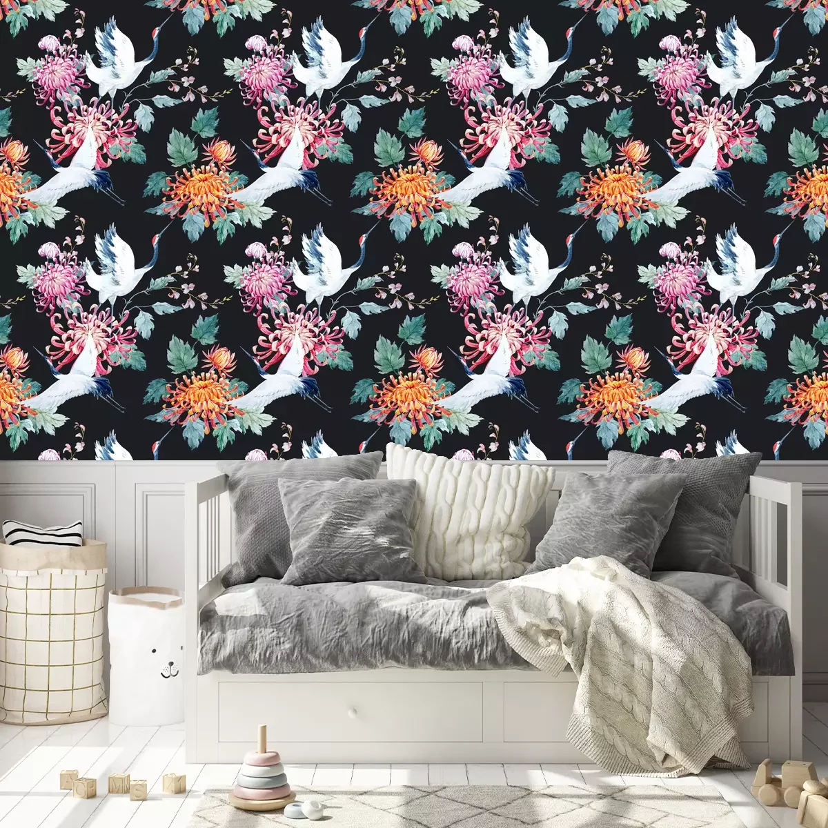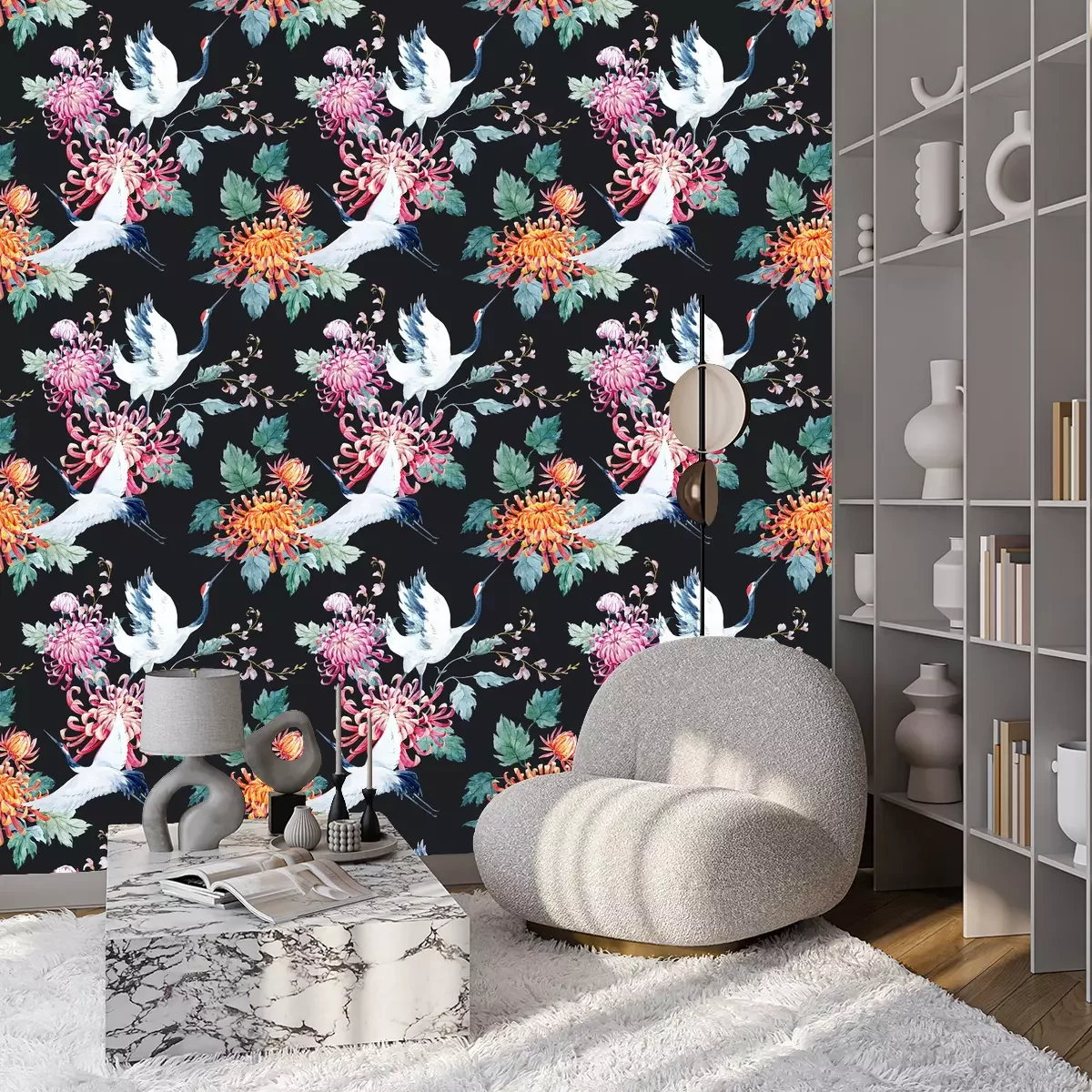 Kraniche und bunte BlumenProblemlose Lieferung durch vertrauenswürdige Spediteure