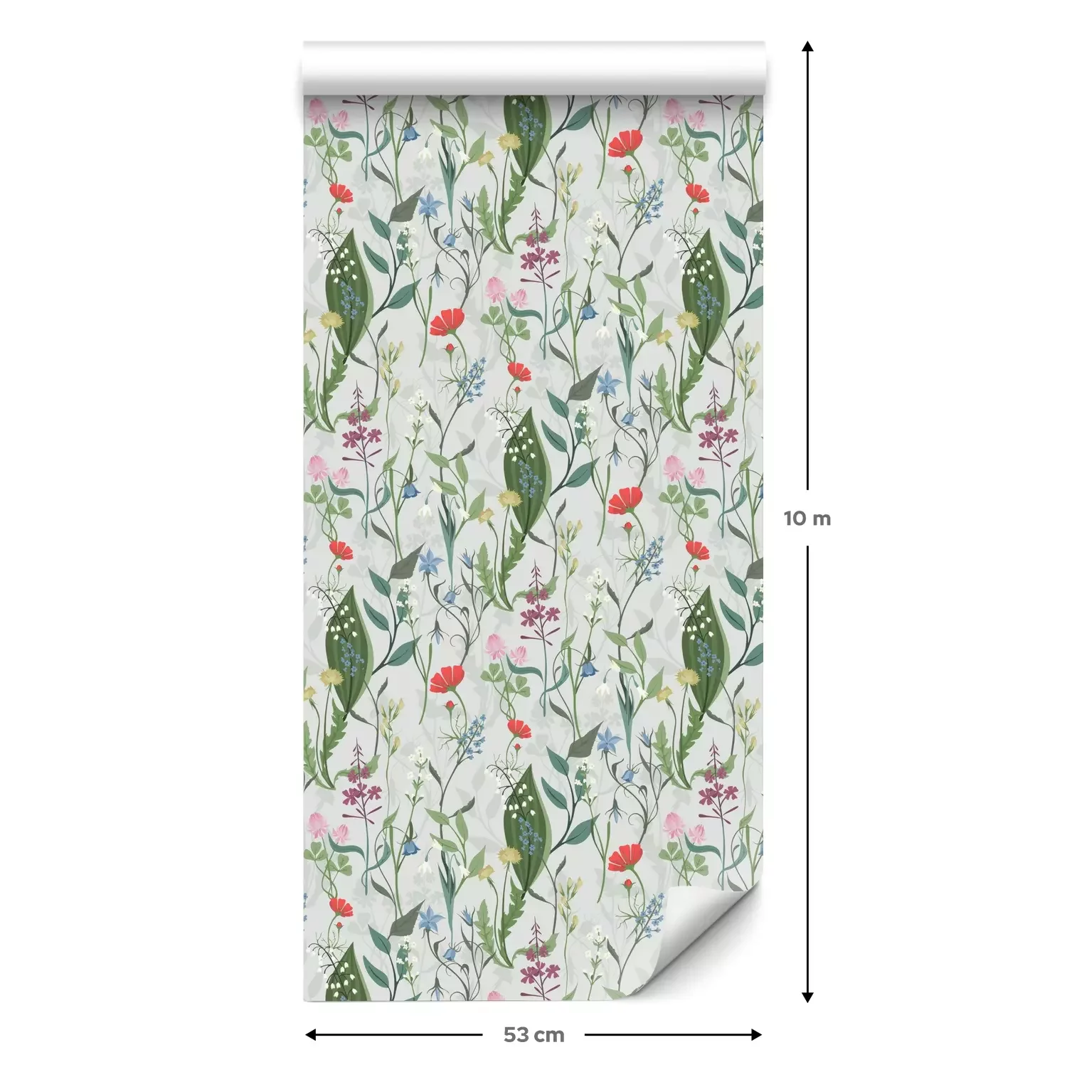 Eine Standard-Tapetenrolle hat die Maße 0,53 m x 10 m und deckt eine Wandfläche von etwa 5 m² ab.