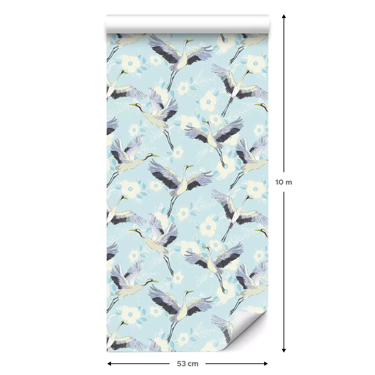 Eine Standard-Tapetenrolle hat die Maße 0,53 m x 10 m und deckt eine Wandfläche von etwa 5 m² ab.
