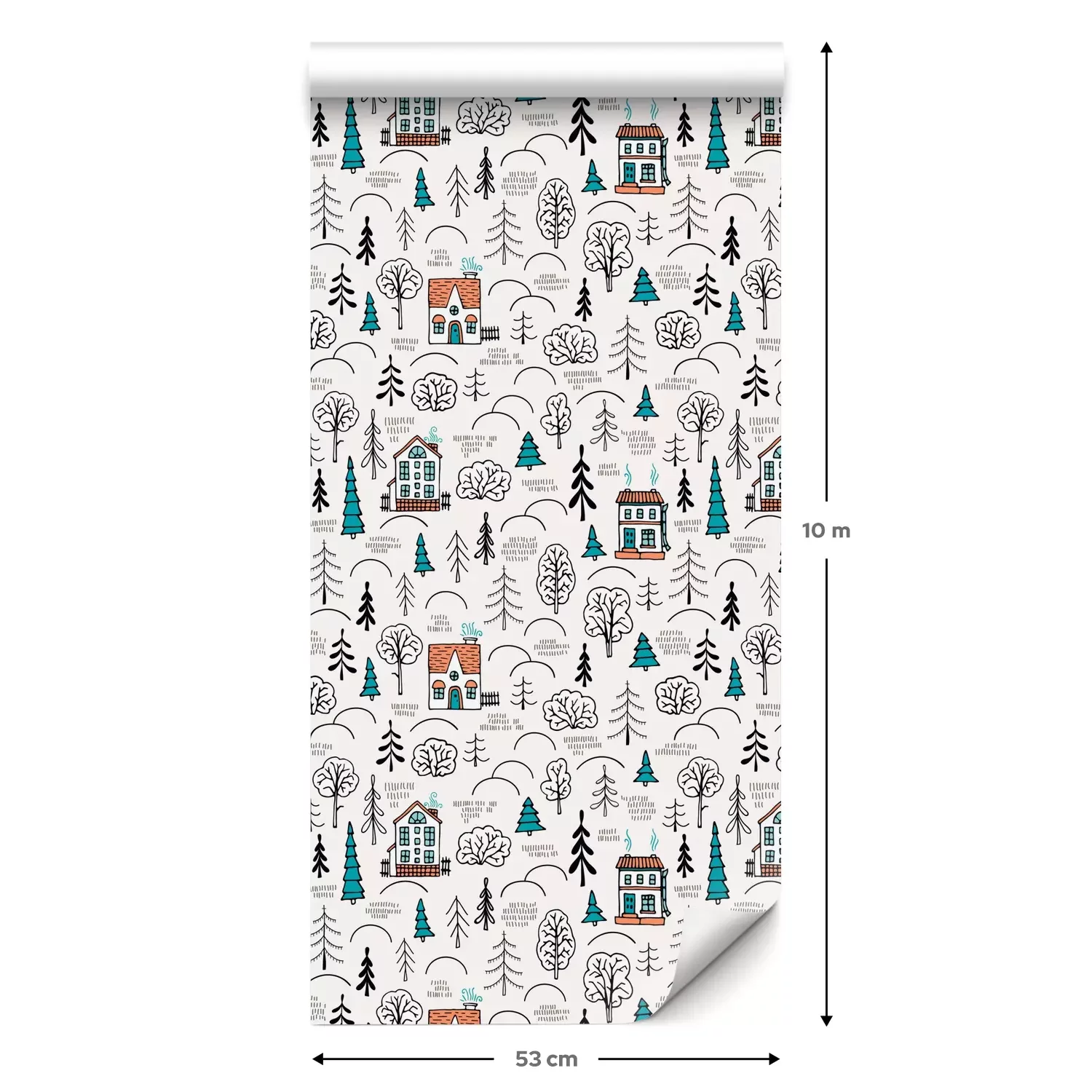 Eine Standard-Tapetenrolle hat die Maße 0,53 m x 10 m und deckt eine Wandfläche von etwa 5 m² ab.