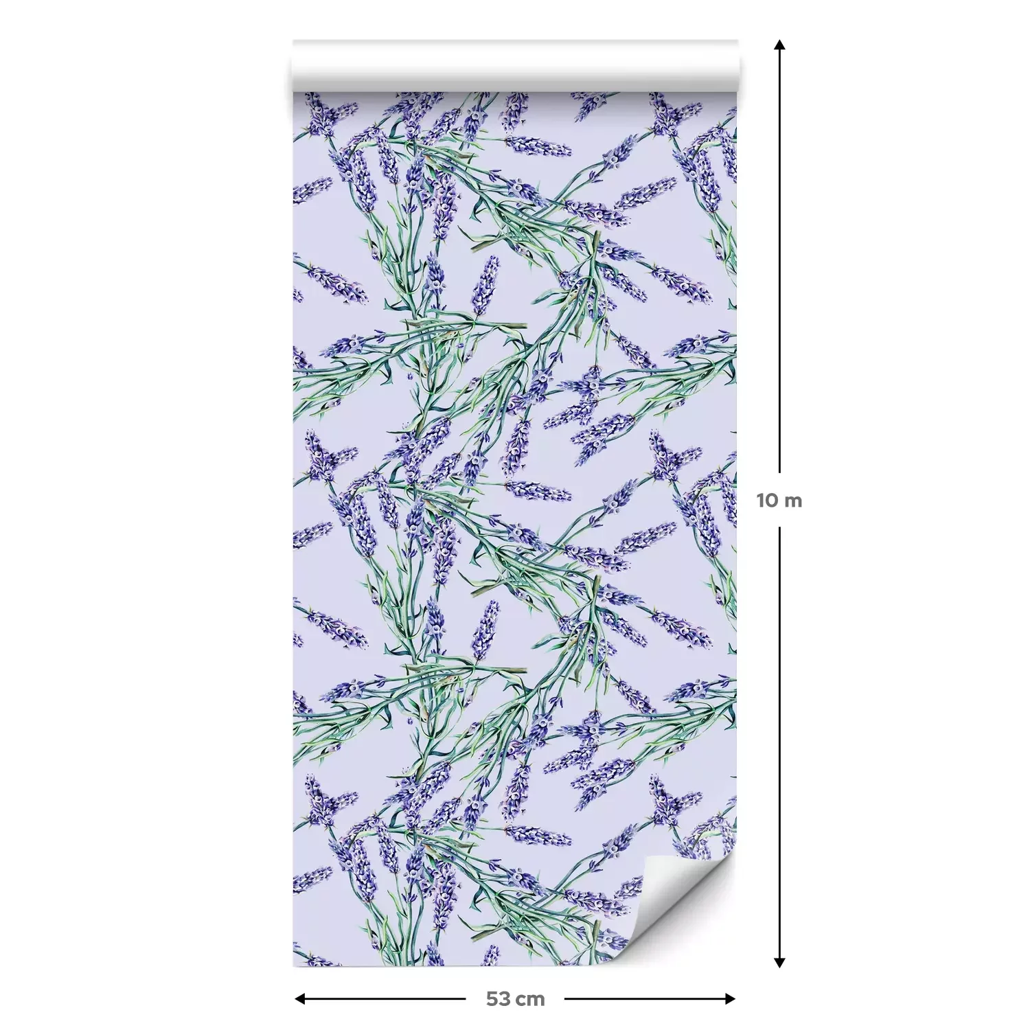 Eine Standard-Tapetenrolle hat die Maße 0,53 m x 10 m und deckt eine Wandfläche von etwa 5 m² ab.