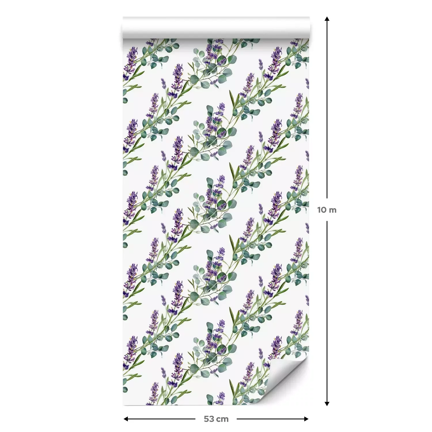 Eine Standard-Tapetenrolle hat die Maße 0,53 m x 10 m und deckt eine Wandfläche von etwa 5 m² ab.