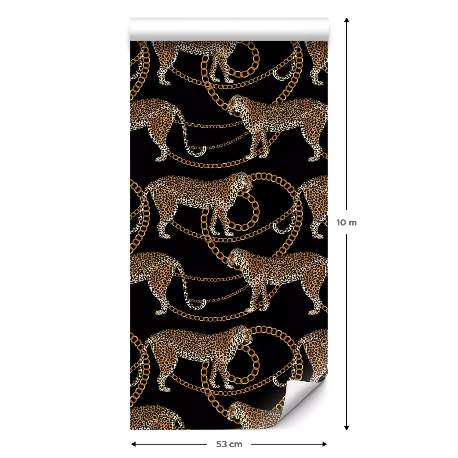 Eine Standard-Tapetenrolle hat die Maße 0,53 m x 10 m und deckt eine Wandfläche von etwa 5 m² ab.