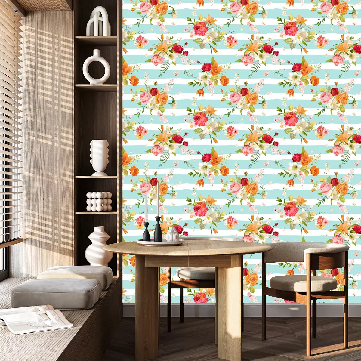 Eine Standard-Tapetenrolle hat die Maße 0,53 m x 10 m und deckt eine Wandfläche von etwa 5 m² ab.