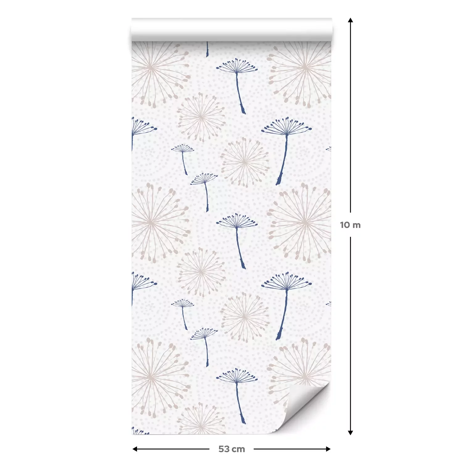 Eine Standard-Tapetenrolle hat die Maße 0,53 m x 10 m und deckt eine Wandfläche von etwa 5 m² ab.