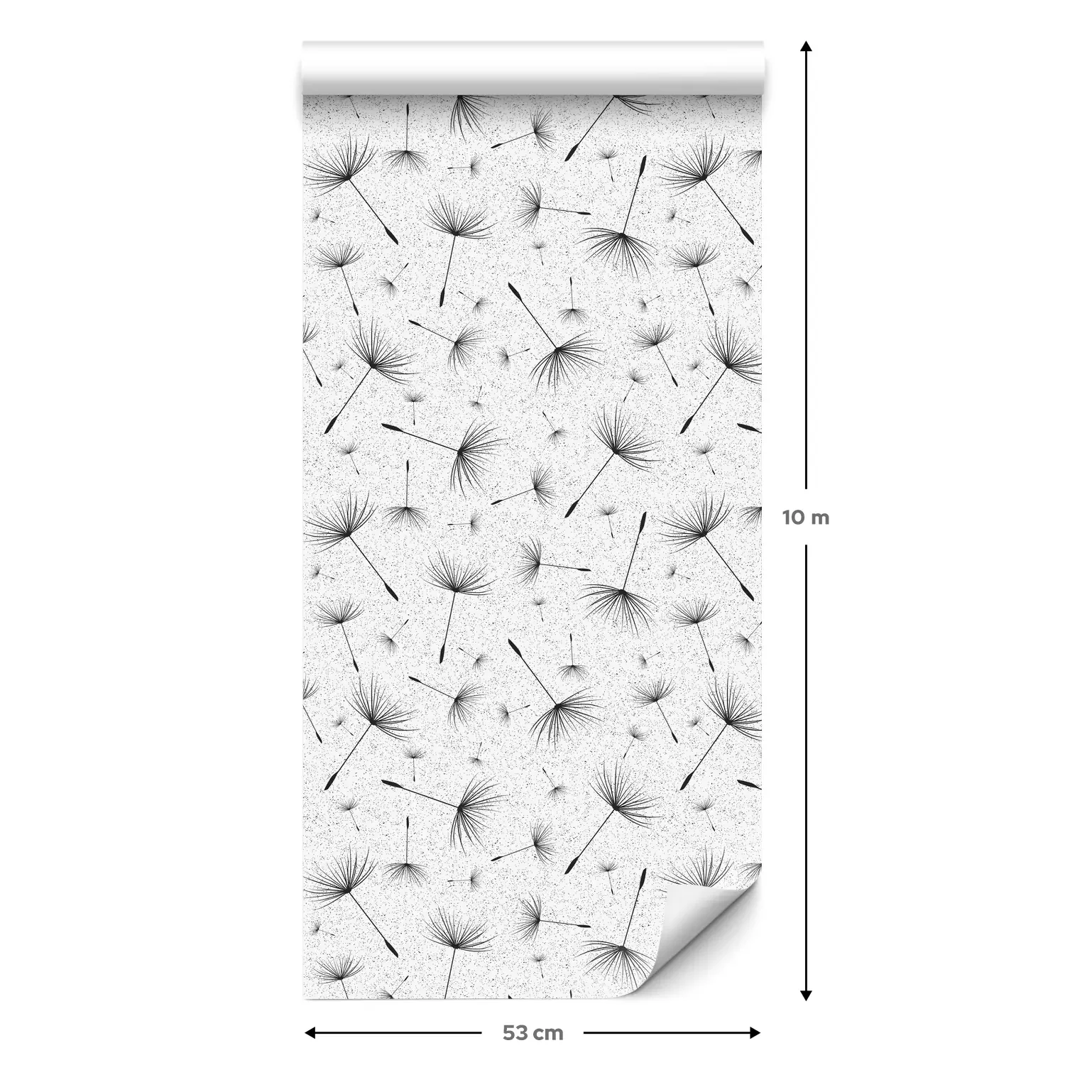Eine Standard-Tapetenrolle hat die Maße 0,53 m x 10 m und deckt eine Wandfläche von etwa 5 m² ab.