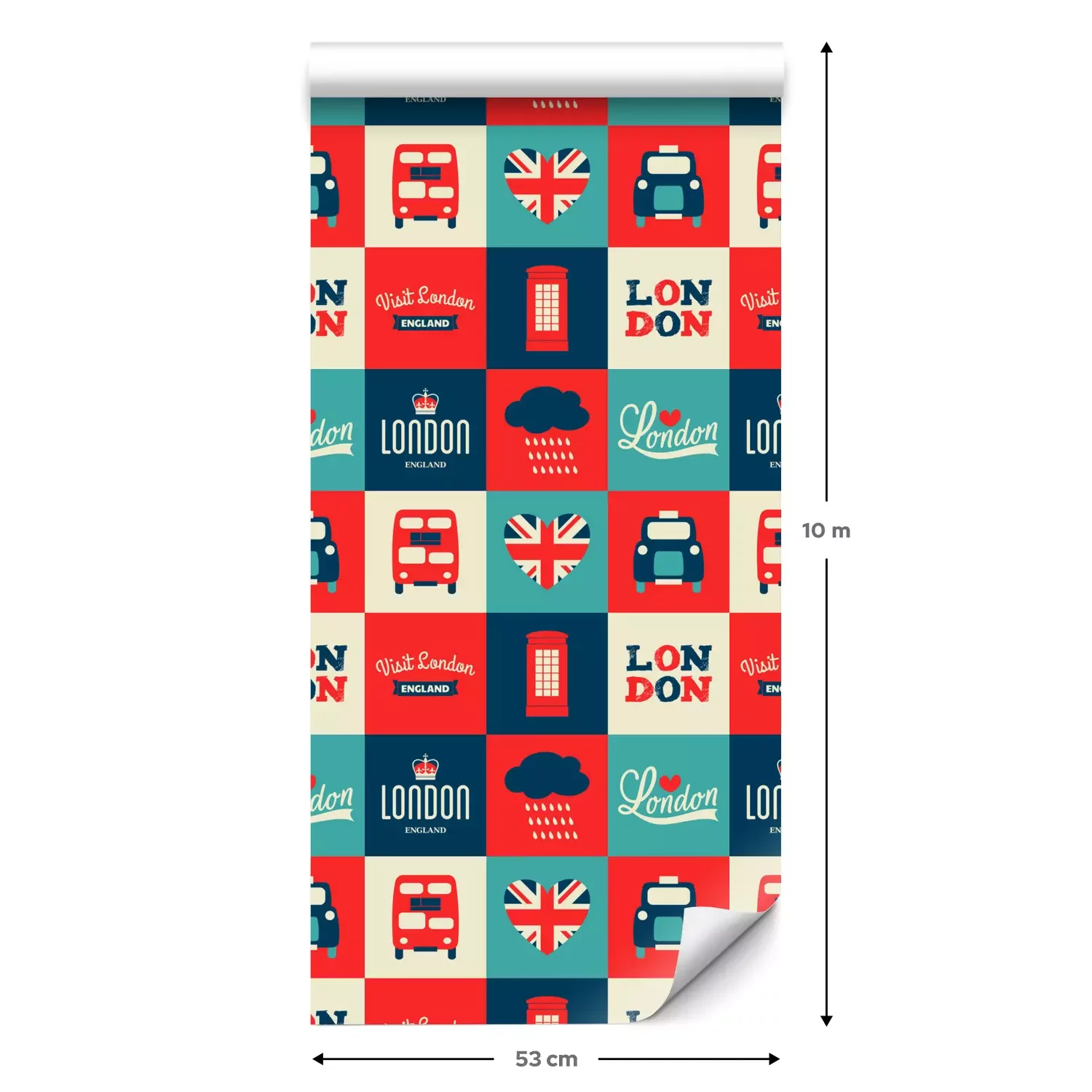 Eine Standard-Tapetenrolle hat die Maße 0,53 m x 10 m und deckt eine Wandfläche von etwa 5 m² ab.