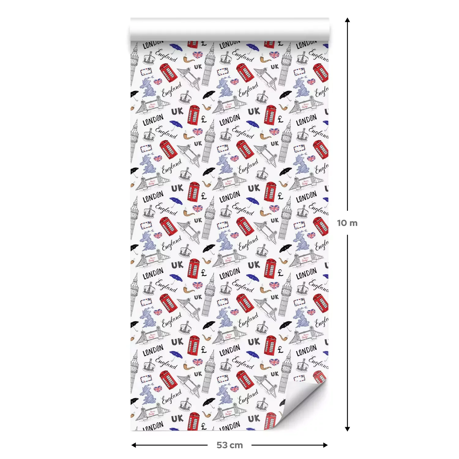 Eine Standard-Tapetenrolle hat die Maße 0,53 m x 10 m und deckt eine Wandfläche von etwa 5 m² ab.