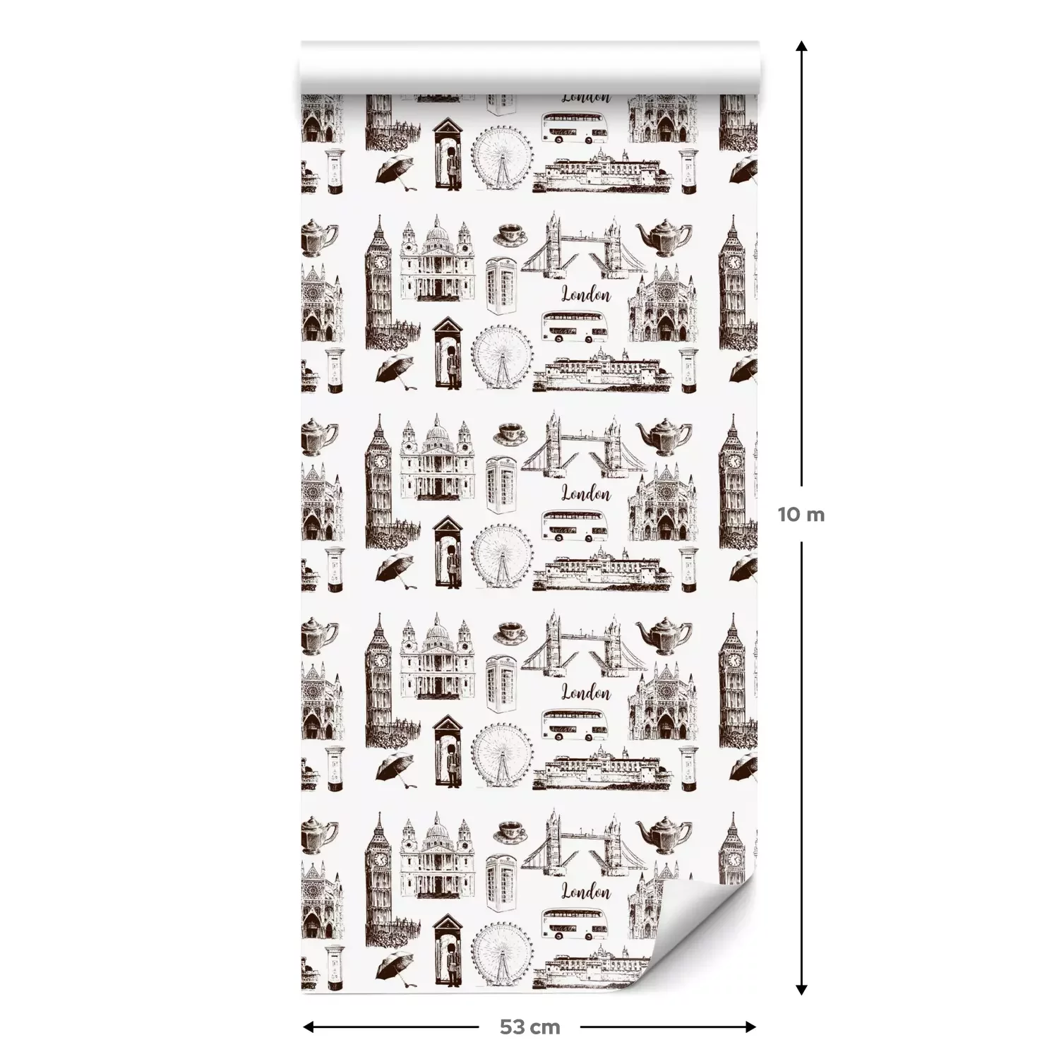 Eine Standard-Tapetenrolle hat die Maße 0,53 m x 10 m und deckt eine Wandfläche von etwa 5 m² ab.