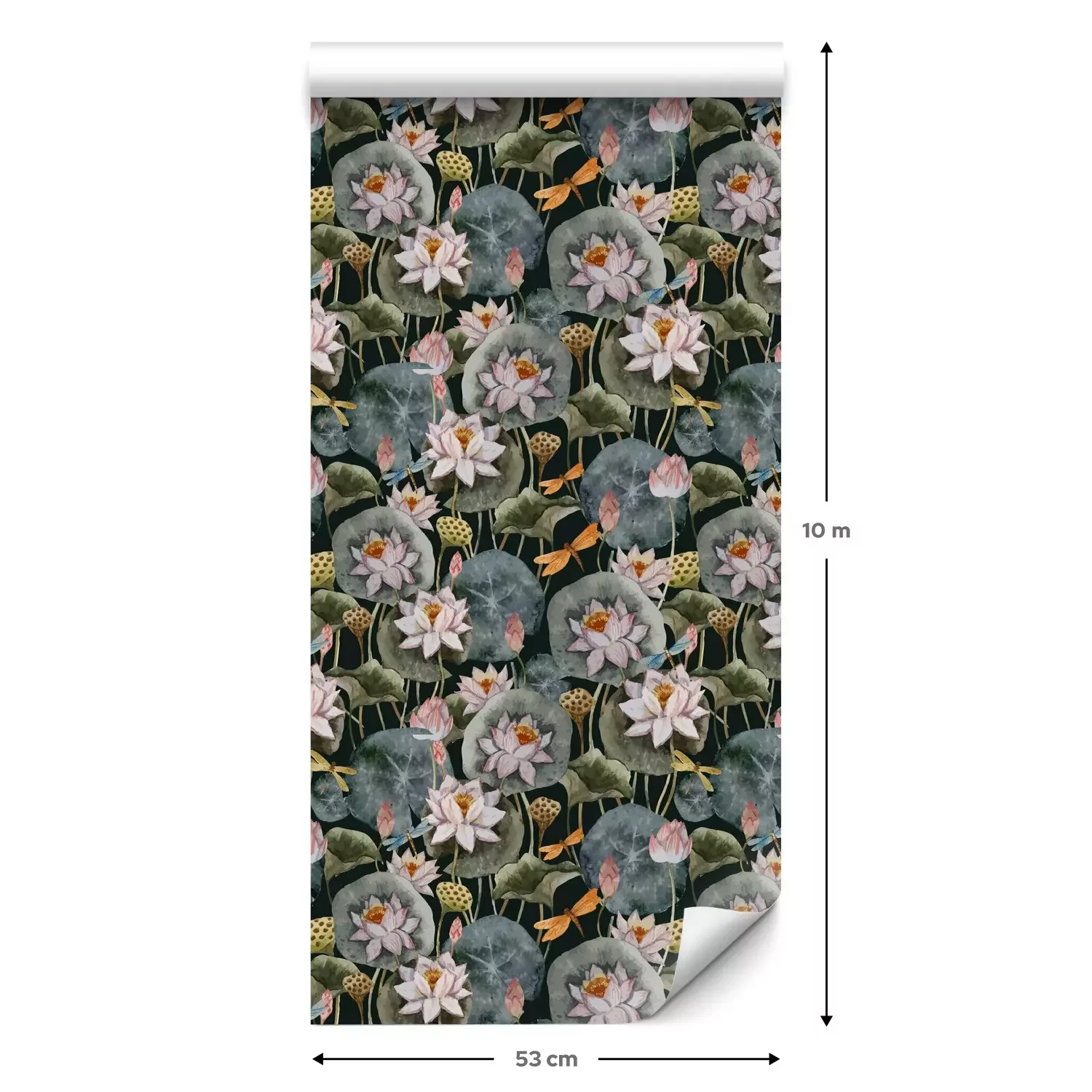 Eine Standard-Tapetenrolle hat die Maße 0,53 m x 10 m und deckt eine Wandfläche von etwa 5 m² ab.