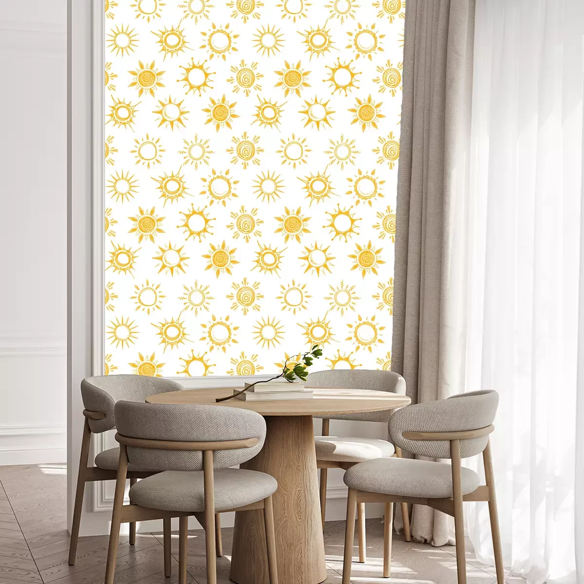 Die Tapete zeichnet sich durch ein sich wiederholendes Muster aus, das ein rhythmisches Design erzeugt. Als Trägermaterial wird hier Vlies verwendet. Sie wird in Rollen mit den standardisierten Maßen 10 m x 53 cm verkauft. Eine Fototapete ist eine spezielle Art von Tapete, auf der ein Foto oder ein realistisches Bild (z.B. eine Landschaft oder eine Stadtansicht) großflächig aufgedruckt ist. Sie wird nicht in Standardrollen verkauft, sondern in Bahnen, die auf die Abmessungen einer bestimmten Wand zugeschnitten sind. So passt das gesamte Motiv perfekt darauf. Zudem können Sie das Material wählen, aus dem die Tapete hergestellt werden soll.