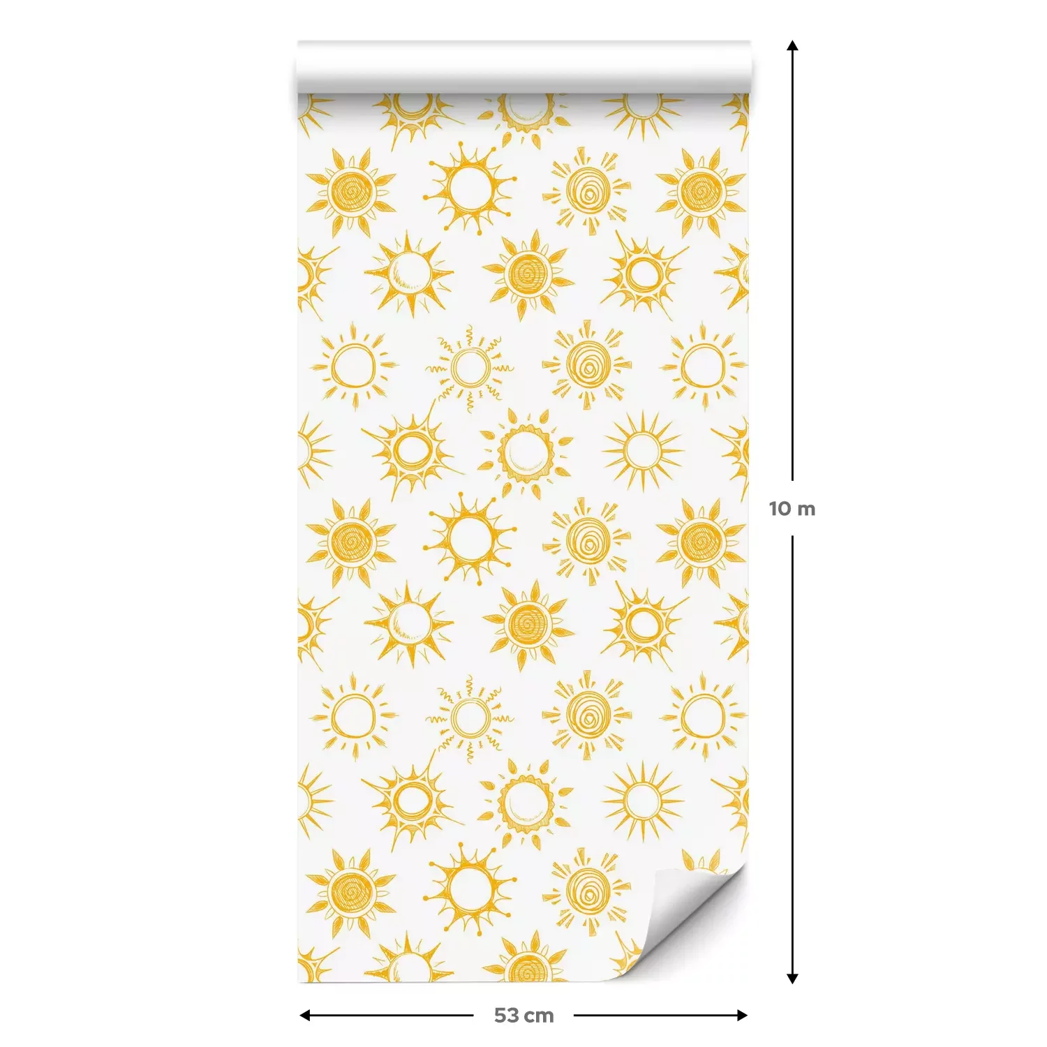 Eine Standard-Tapetenrolle hat die Maße 0,53 m x 10 m und deckt eine Wandfläche von etwa 5 m² ab.