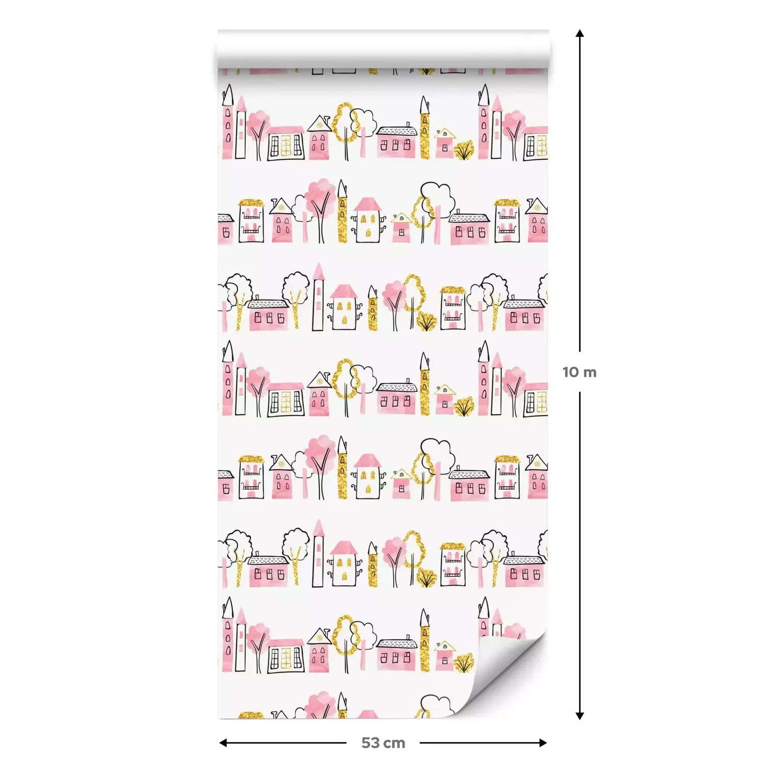 Eine Standard-Tapetenrolle hat die Maße 0,53 m x 10 m und deckt eine Wandfläche von etwa 5 m² ab.