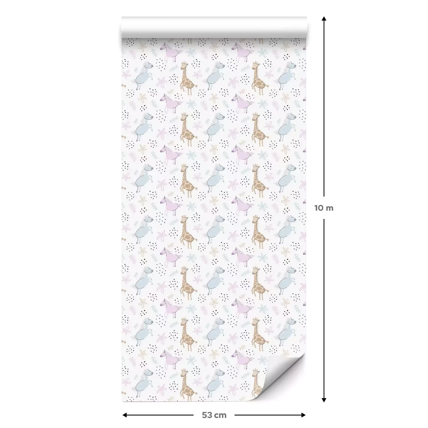 Eine Standard-Tapetenrolle hat die Maße 0,53 m x 10 m und deckt eine Wandfläche von etwa 5 m² ab.