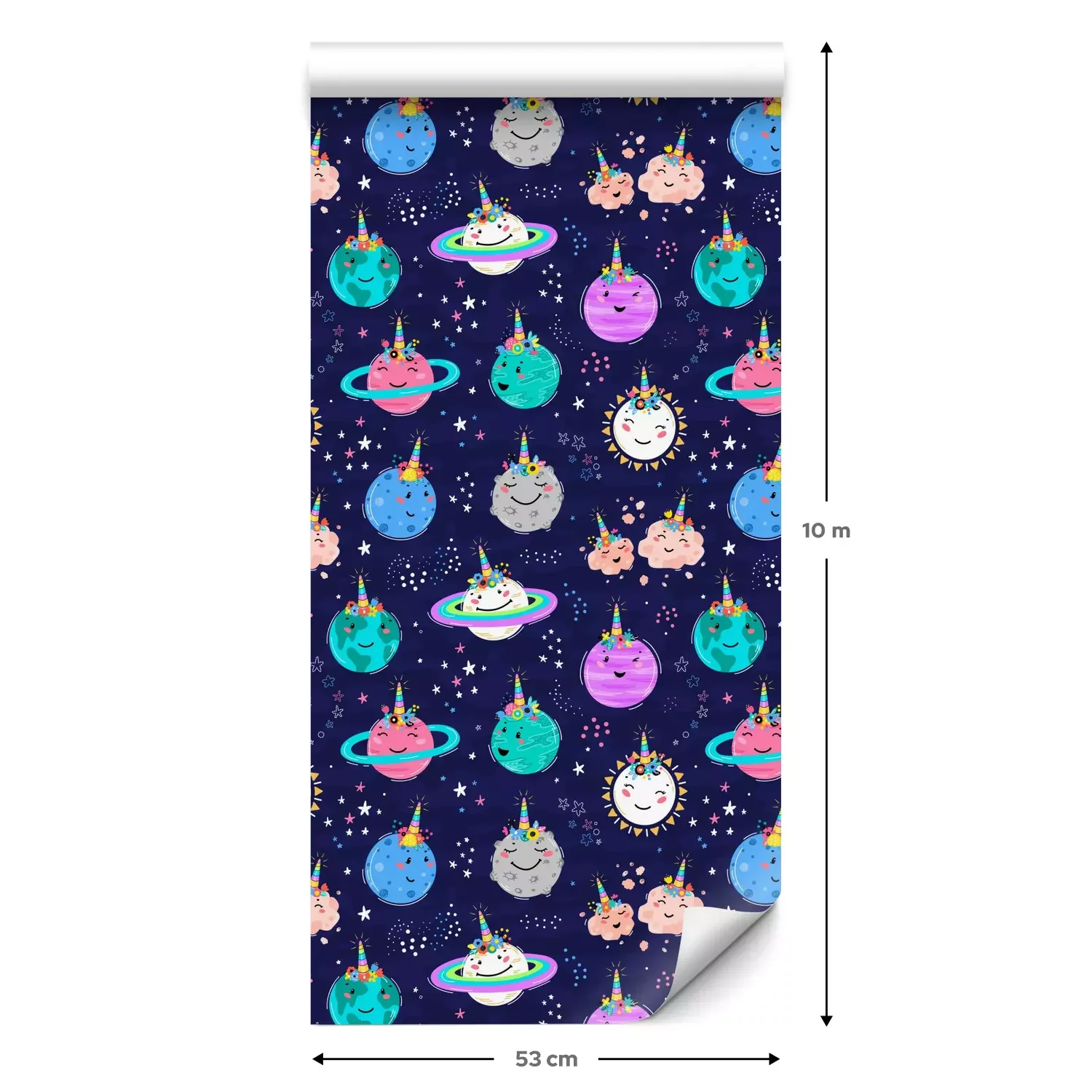 Eine Standard-Tapetenrolle hat die Maße 0,53 m x 10 m und deckt eine Wandfläche von etwa 5 m² ab.