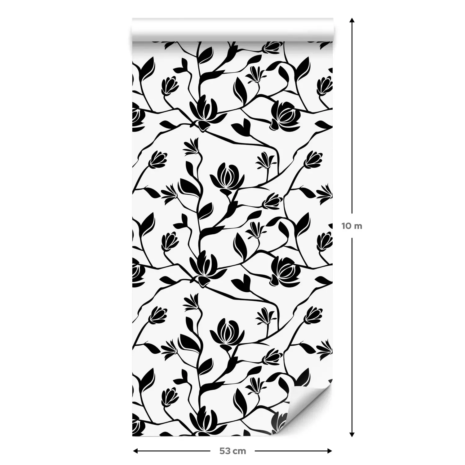 Eine Standard-Tapetenrolle hat die Maße 0,53 m x 10 m und deckt eine Wandfläche von etwa 5 m² ab.