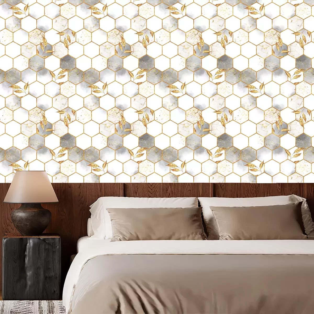 Hexagone in Rosa und GrauTapete