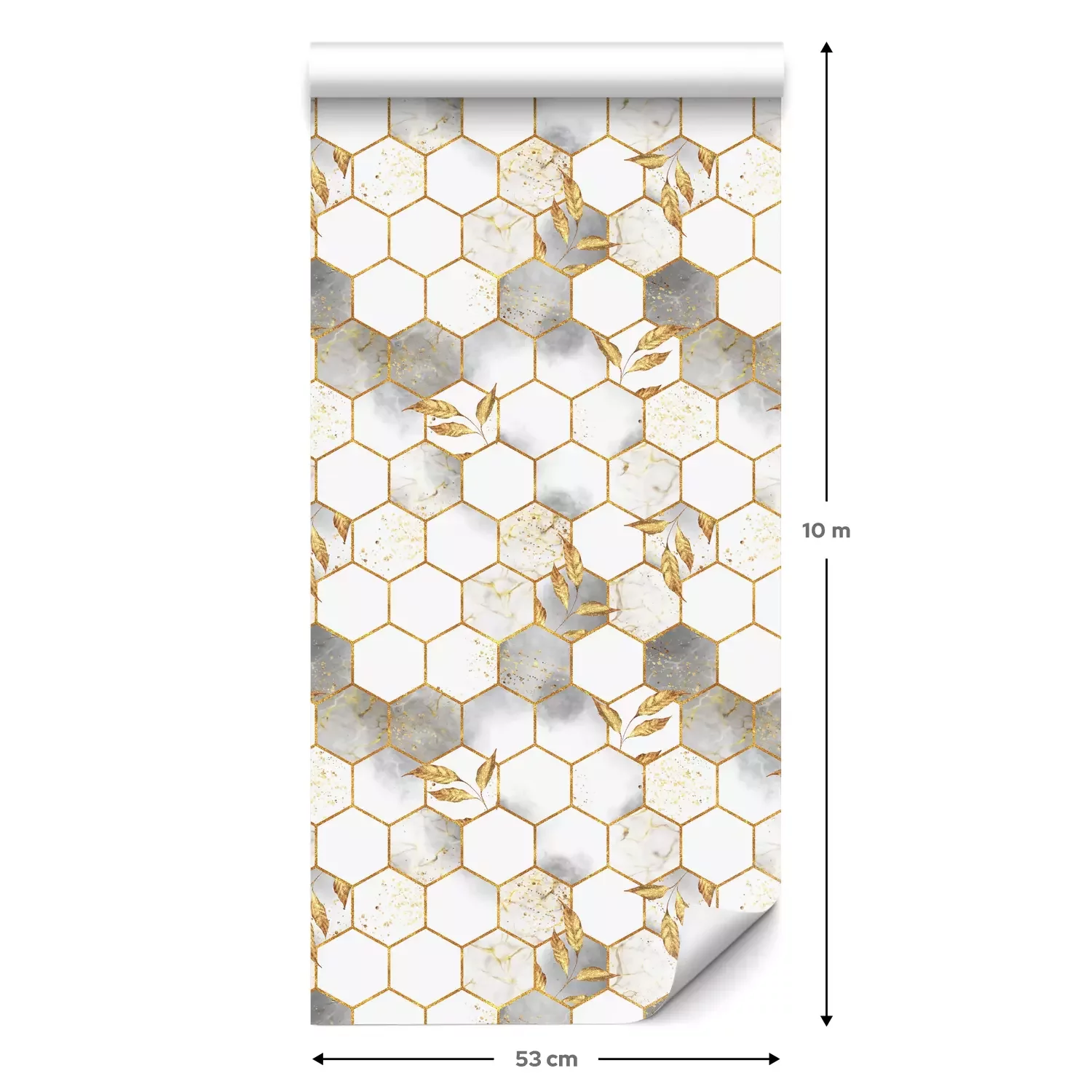 Eine Standard-Tapetenrolle hat die Maße 0,53 m x 10 m und deckt eine Wandfläche von etwa 5 m² ab.