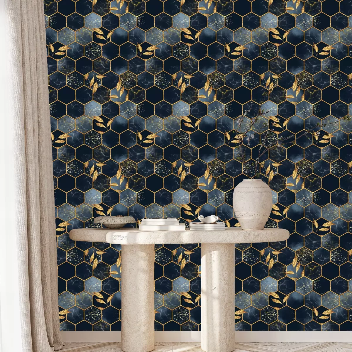 Hexagone in Rosa und GrauTapete