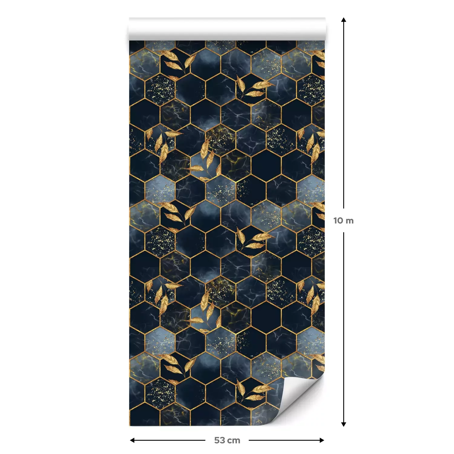 Eine Standard-Tapetenrolle hat die Maße 0,53 m x 10 m und deckt eine Wandfläche von etwa 5 m² ab.
