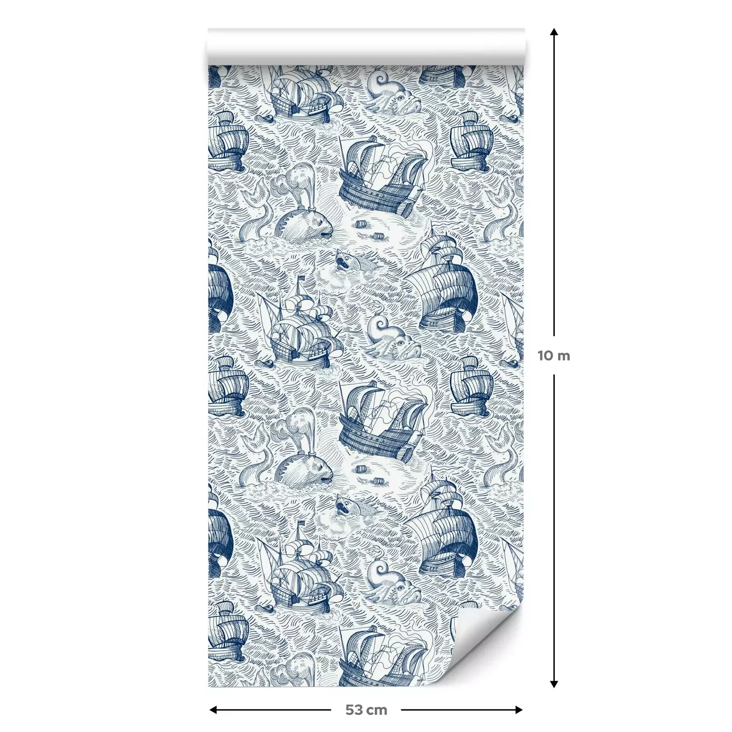 Eine Standard-Tapetenrolle hat die Maße 0,53 m x 10 m und deckt eine Wandfläche von etwa 5 m² ab.