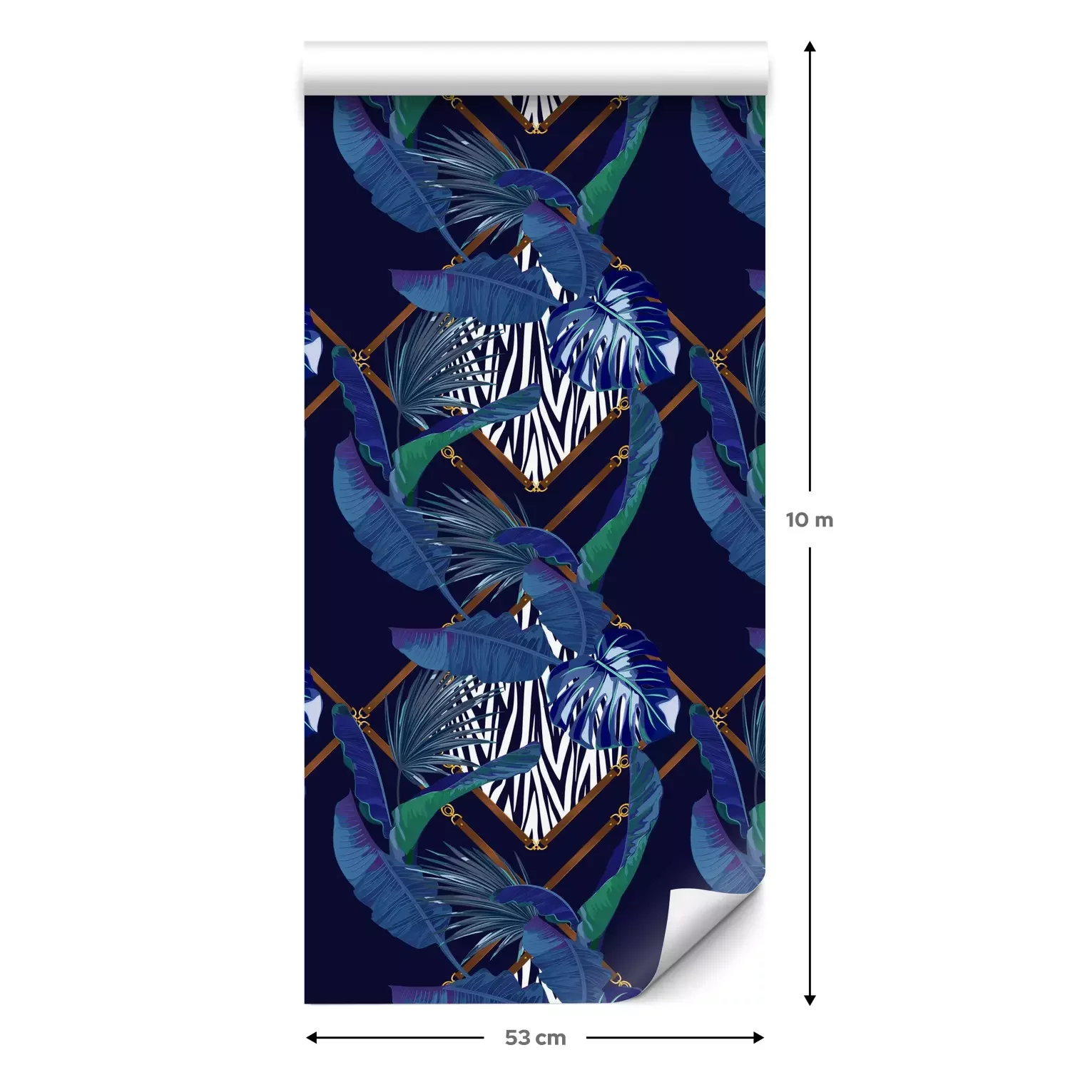 Eine Standard-Tapetenrolle hat die Maße 0,53 m x 10 m und deckt eine Wandfläche von etwa 5 m² ab.