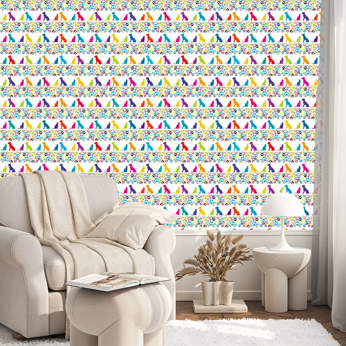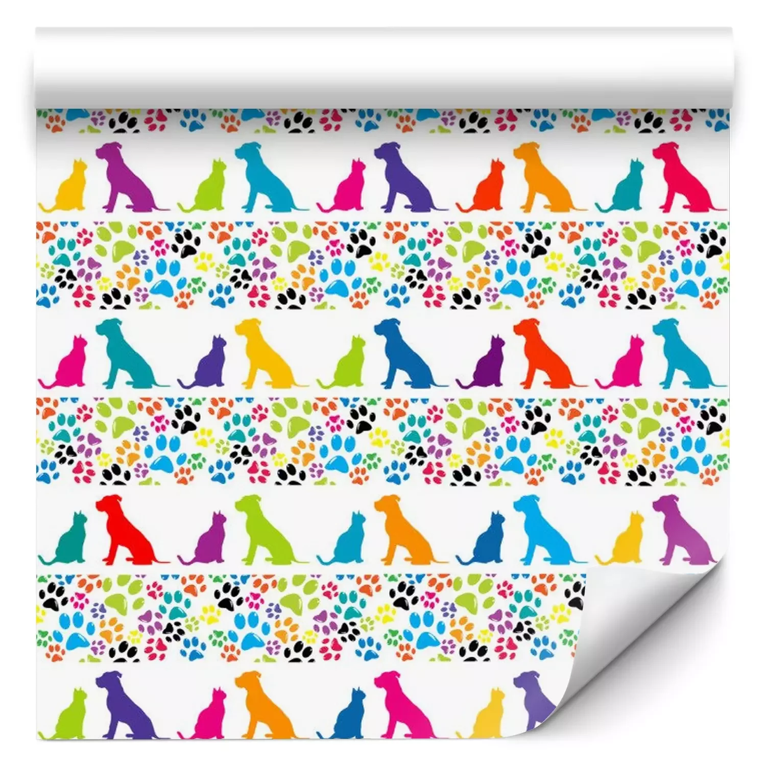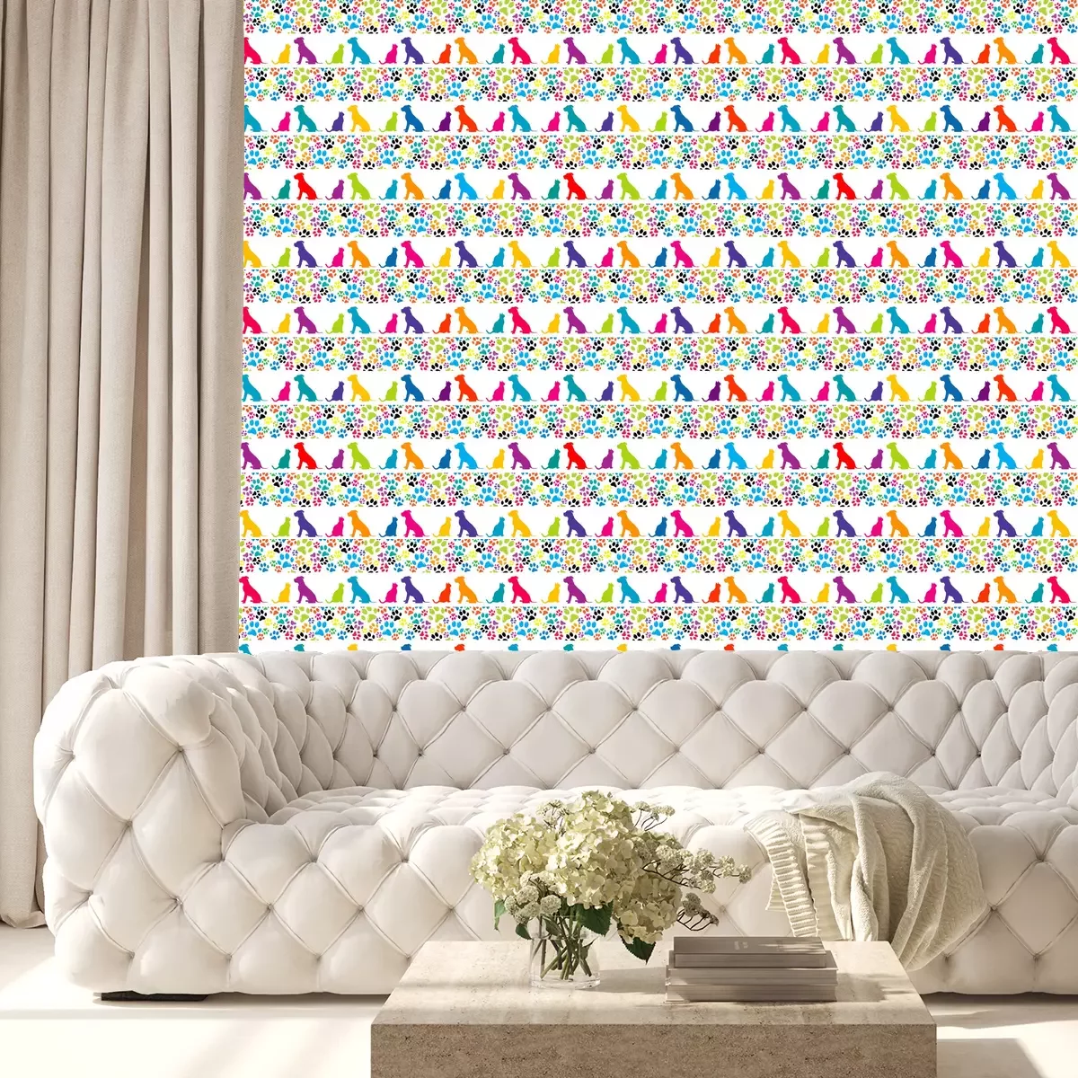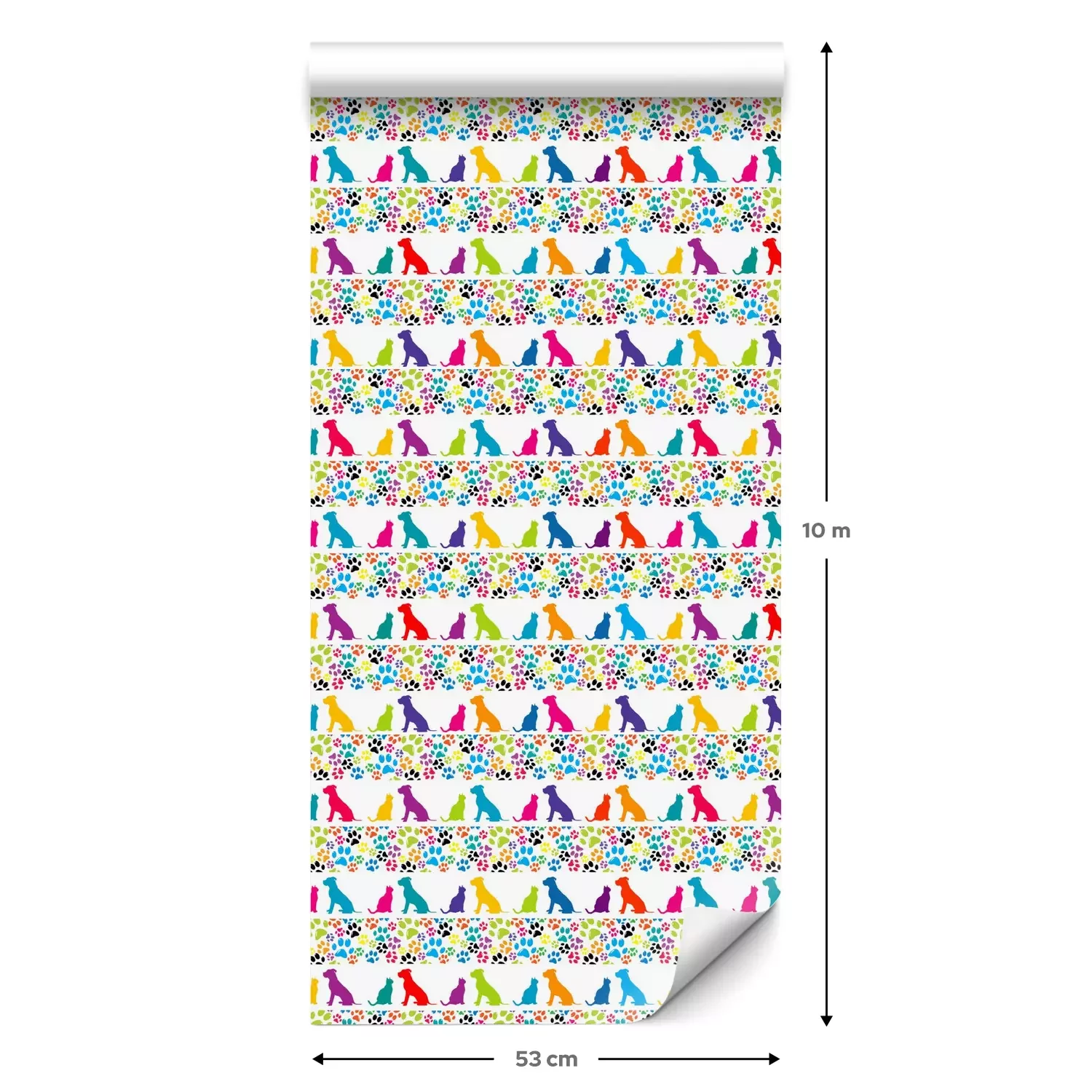 Tapete Mehrfarbige Hunde und Pfotenabdrücke