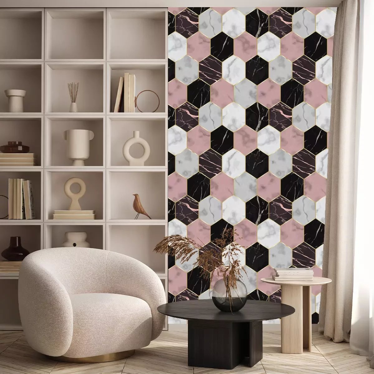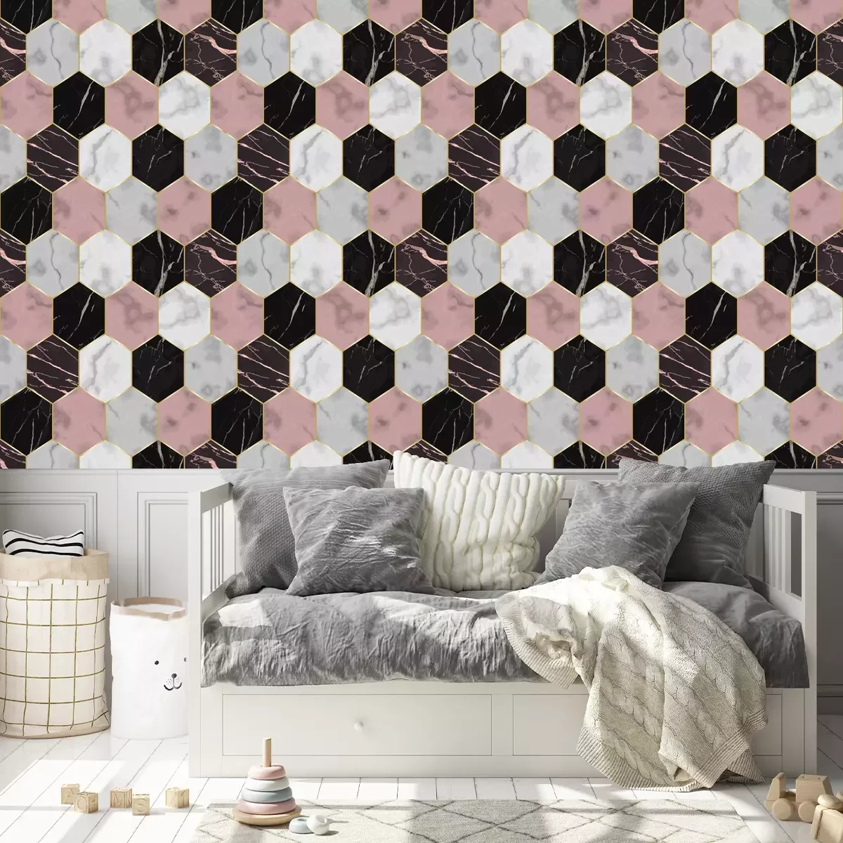 Fischgrätenmarmor in WeißTapete