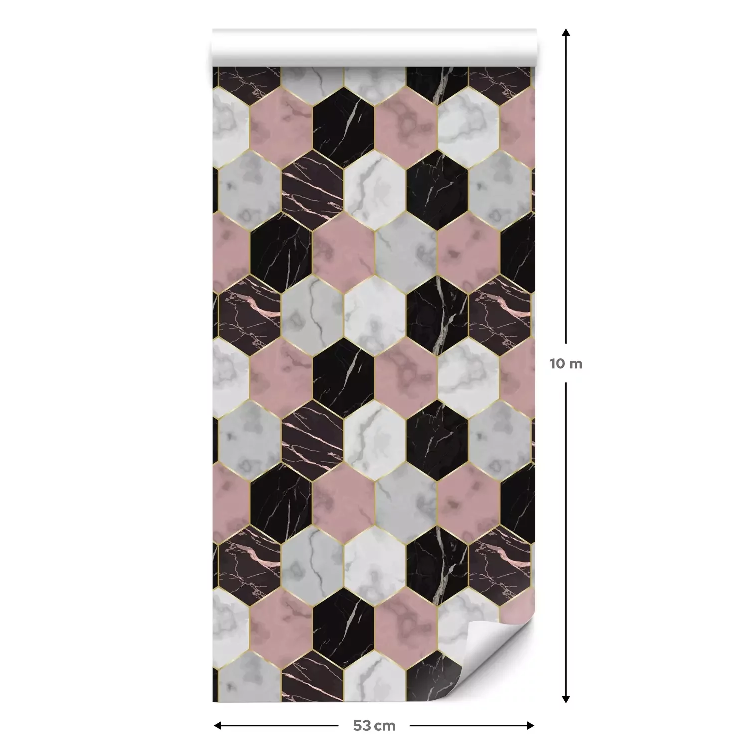 Eine Standard-Tapetenrolle hat die Maße 0,53 m x 10 m und deckt eine Wandfläche von etwa 5 m² ab.