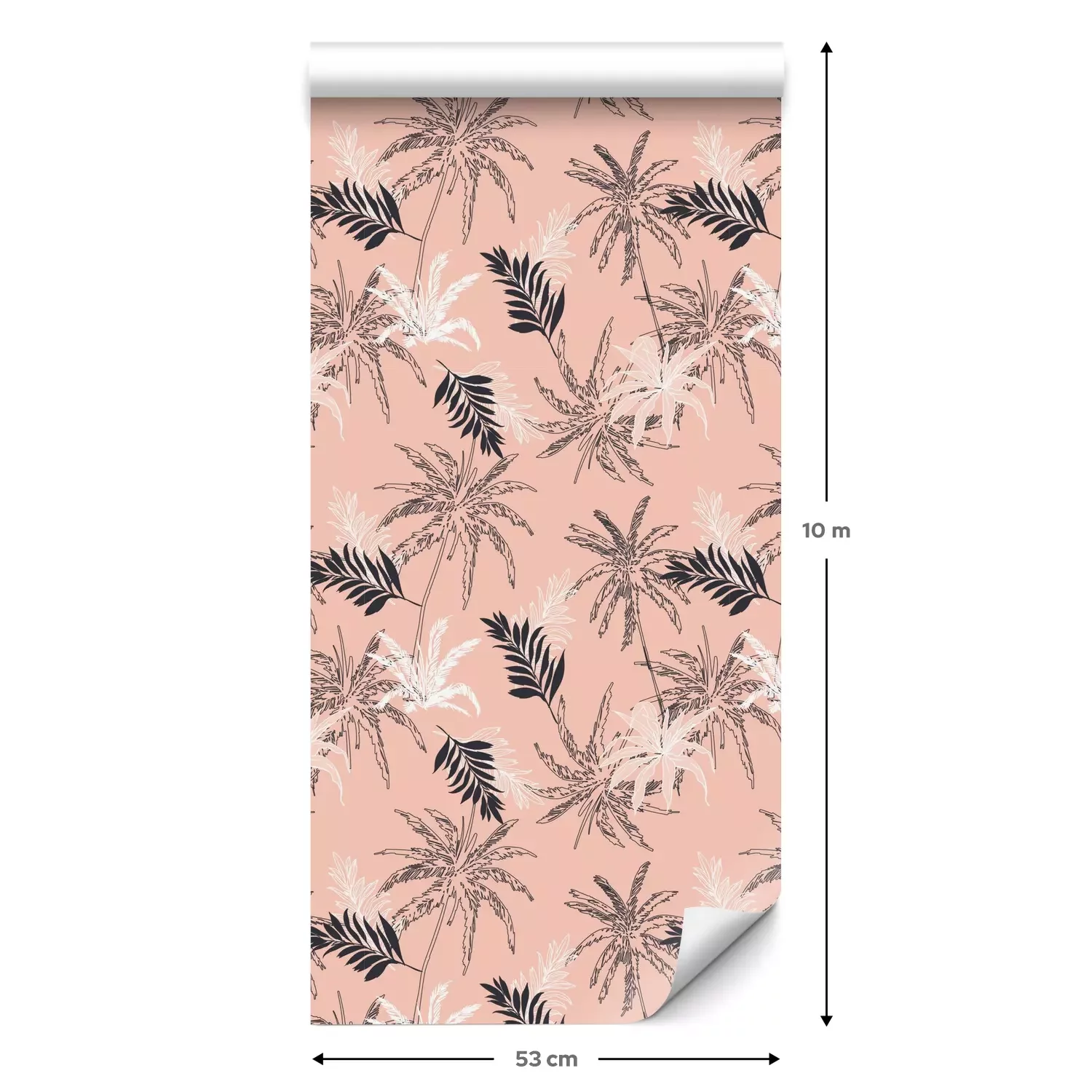 Eine Standard-Tapetenrolle hat die Maße 0,53 m x 10 m und deckt eine Wandfläche von etwa 5 m² ab.
