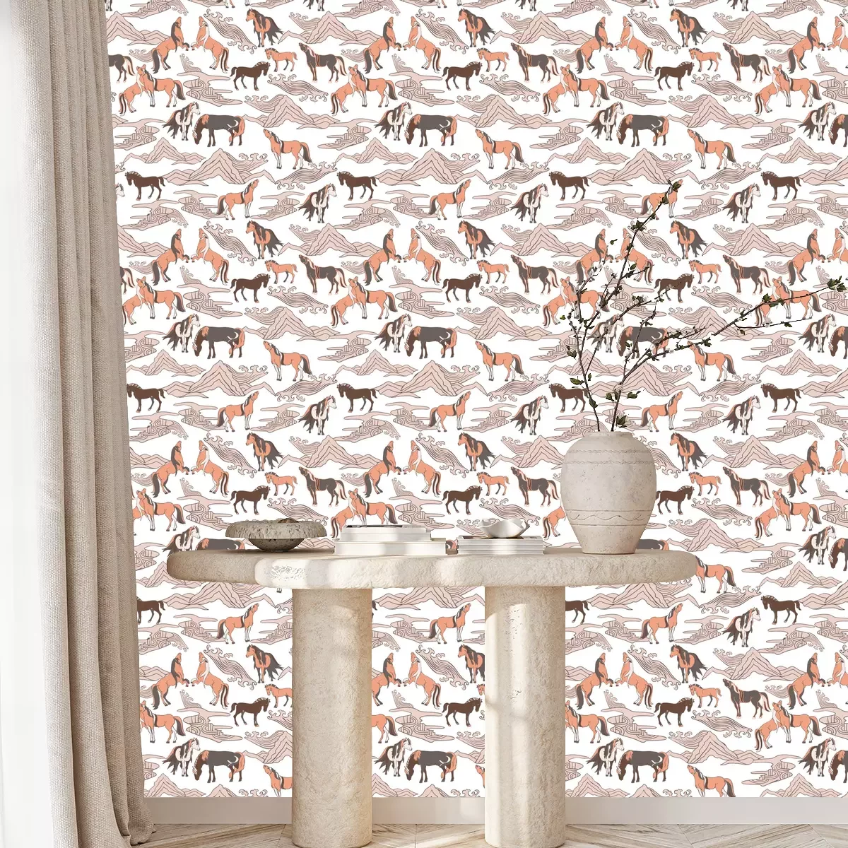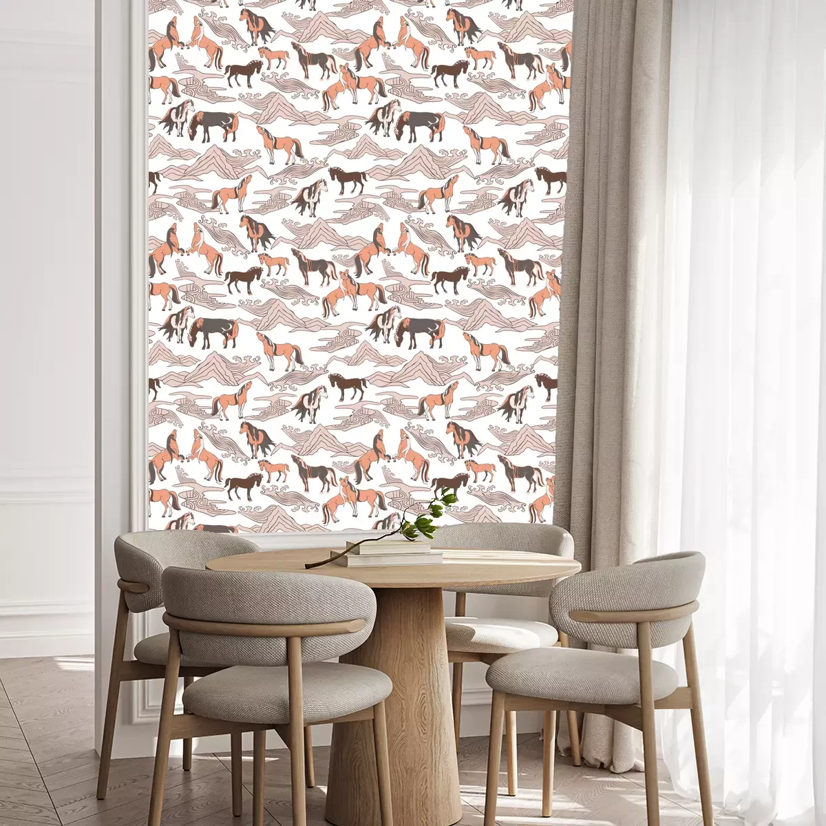 Von der Zeitlosigkeit der Dekorationen wie Tapeten muss man wohl niemanden überzeugen. Abstrakt dargestellte Pferde inmitten einer Berglandschaft sind eine einzigartige Dekorationslösung, die jedem Raum Charakter und Charme verleihen kann. Diese künstlerische Vision vereint die Harmonie der Natur mit der Kraft der Pferde. Eine Tapete Pferde mit solch einer Landschaft schafft daher ein faszinierendes Bild, das auf vielfältige Weise interpretiert werden kann. Eine Einrichtung, in der eine solche Tapete mit Pferden und Berglandschaften verwendet werden kann, ist beispielsweise das Wohnzimmer. Dieser Raum dient als Treffpunkt, Entspannungsort und Ruhezone und erhält durch eine solche Dekoration einen einzigartigen Charakter. Die Pferde Tapete kann dabei zum Blickfang werden. Das Muster an einer Wand wird Blicke auf sich ziehen und eine Atmosphäre für Gespräche und Reflexion schaffen. Die anderen Wände können in gedämpften Farben gehalten sein, um nicht mit der Ausdruckskraft der Tapete Pferdemotiv zu konkurrieren. Pferde können auch in Schlafzimmern ihren Platz finden. Die Berglandschaft in Verbindung mit abstrakten Reittieren bringt Ruhe und Harmonie ins Interieur. Die Pferdetapete kann an einer oder zwei gegenüberliegenden Wänden angebracht werden, um einen räumlichen Effekt zu erzeugen und die Einzigartigkeit des Schlafbereichs zu betonen. Eine Tapete mit Pferden und einer abstrakten Berglandschaft kann auch im Büro oder im Arbeitsbereich erscheinen. Dies ist ein Ort, an dem Kreativität und Konzentration wichtig sind, und ein solches Wandkunstwerk kann Inspiration liefern und unsere Kreativität fördern. Es kann zum Beispiel als Hintergrund für einen Schreibtisch verwendet werden. Die Pferde-Tapete lässt sich gut mit verschiedenen Ästhetiken kombinieren. Wenn Sie moderne Interieurs lieben, sieht sie in einem minimalistischen Raum toll aus, wo sie als Kunstwerk und dominantes Gestaltungselement fungiert. Im traditionellen Stil kann die Tapete Pferde elegant und originell wirken und einen interessanten, kontrastierenden Akzent zu klassischen Möbeln und Dekorationen hinzufügen. Diese Pferdetapete ist zweifellos ein einzigartiges Kunstwerk, das dem Raum Charakter und Persönlichkeit verleiht – ein Zimmer mit einer solchen Dekoration hebt sich mit Sicherheit von anderen Arrangements ab.