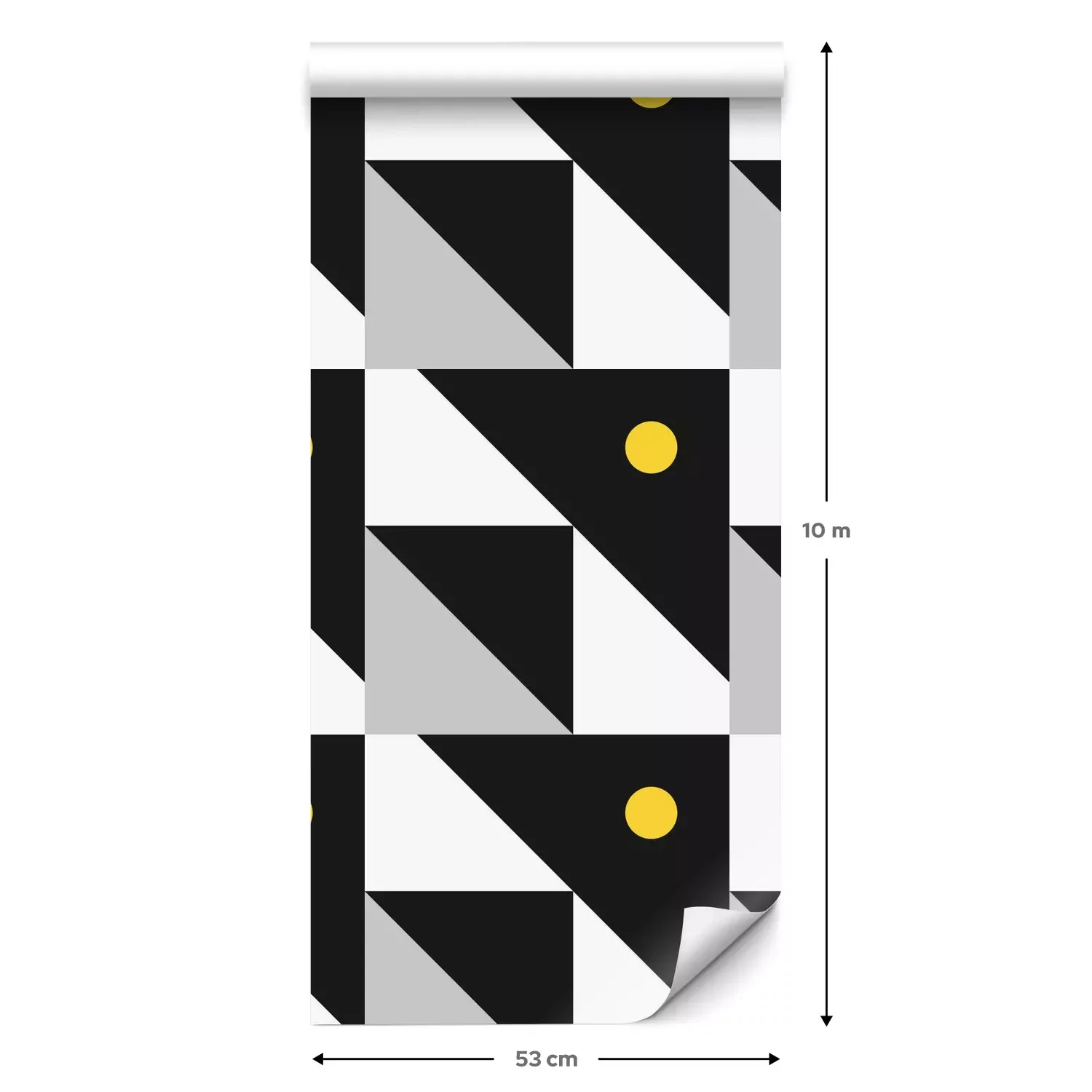 Eine Standard-Tapetenrolle hat die Maße 0,53 m x 10 m und deckt eine Wandfläche von etwa 5 m² ab.