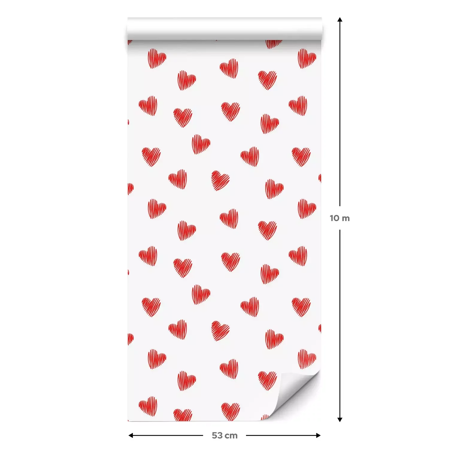 Eine Standard-Tapetenrolle hat die Maße 0,53 m x 10 m und deckt eine Wandfläche von etwa 5 m² ab.