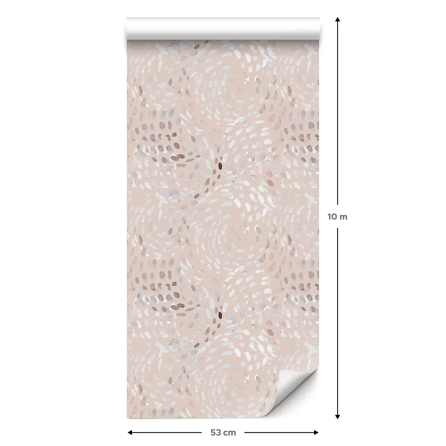 Eine Standard-Tapetenrolle hat die Maße 0,53 m x 10 m und deckt eine Wandfläche von etwa 5 m² ab.