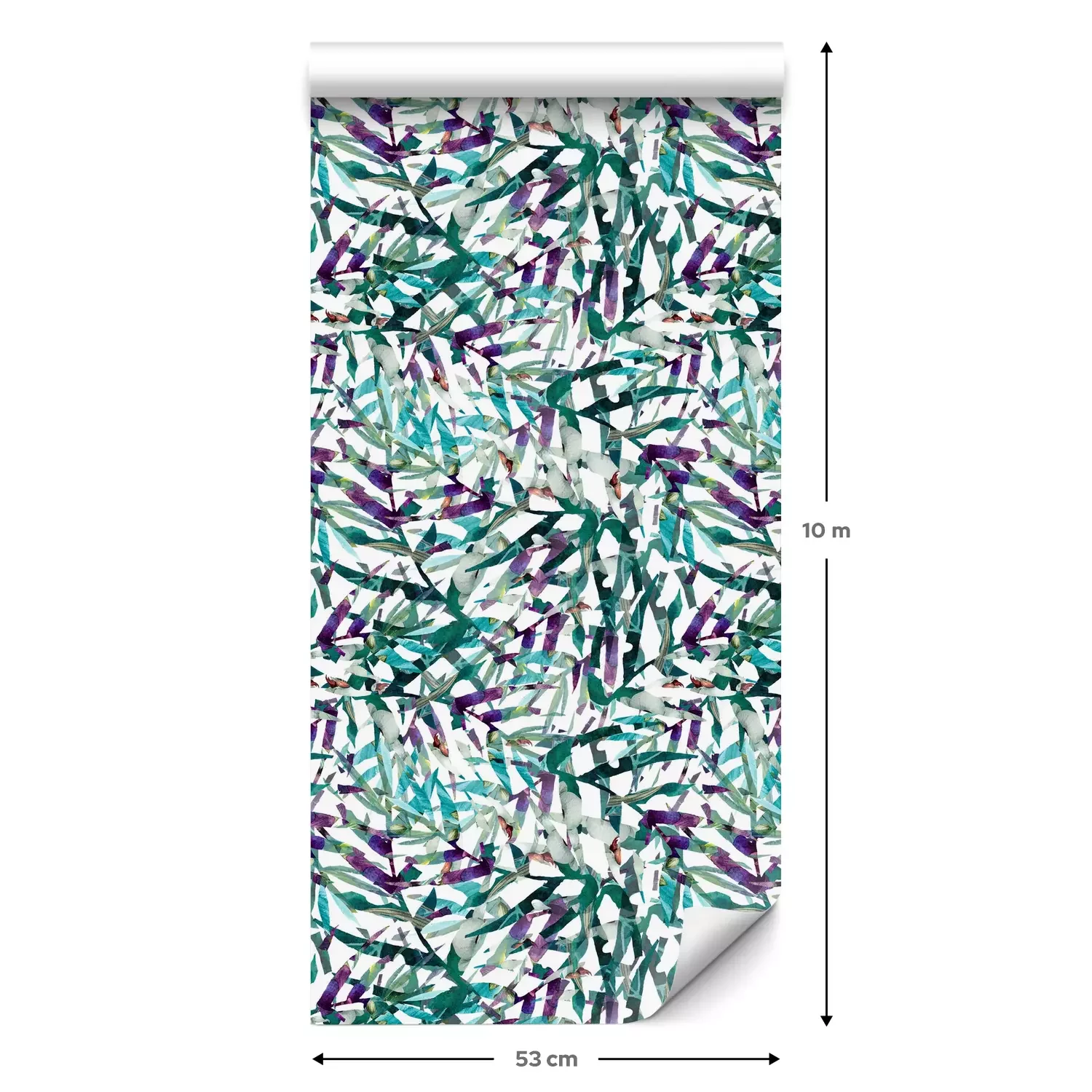Eine Standard-Tapetenrolle hat die Maße 0,53 m x 10 m und deckt eine Wandfläche von etwa 5 m² ab.